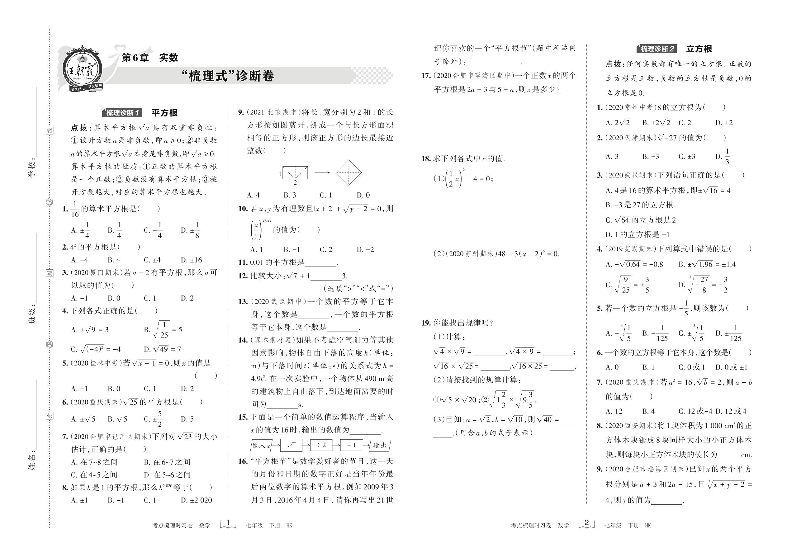2022下册七年级数学沪科版 第6章 “梳理式”诊断卷