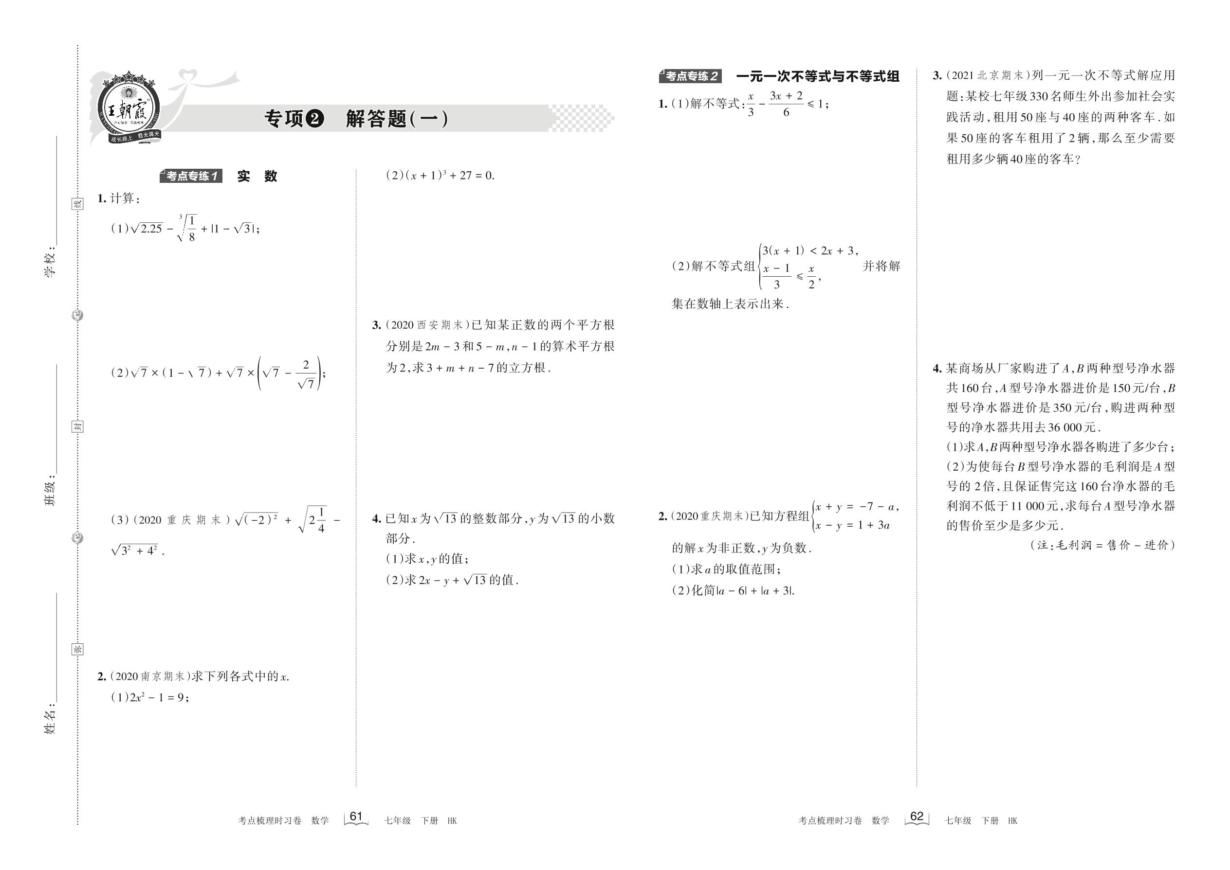 2022下册七年级数学沪科版 专项2 解答题(一)