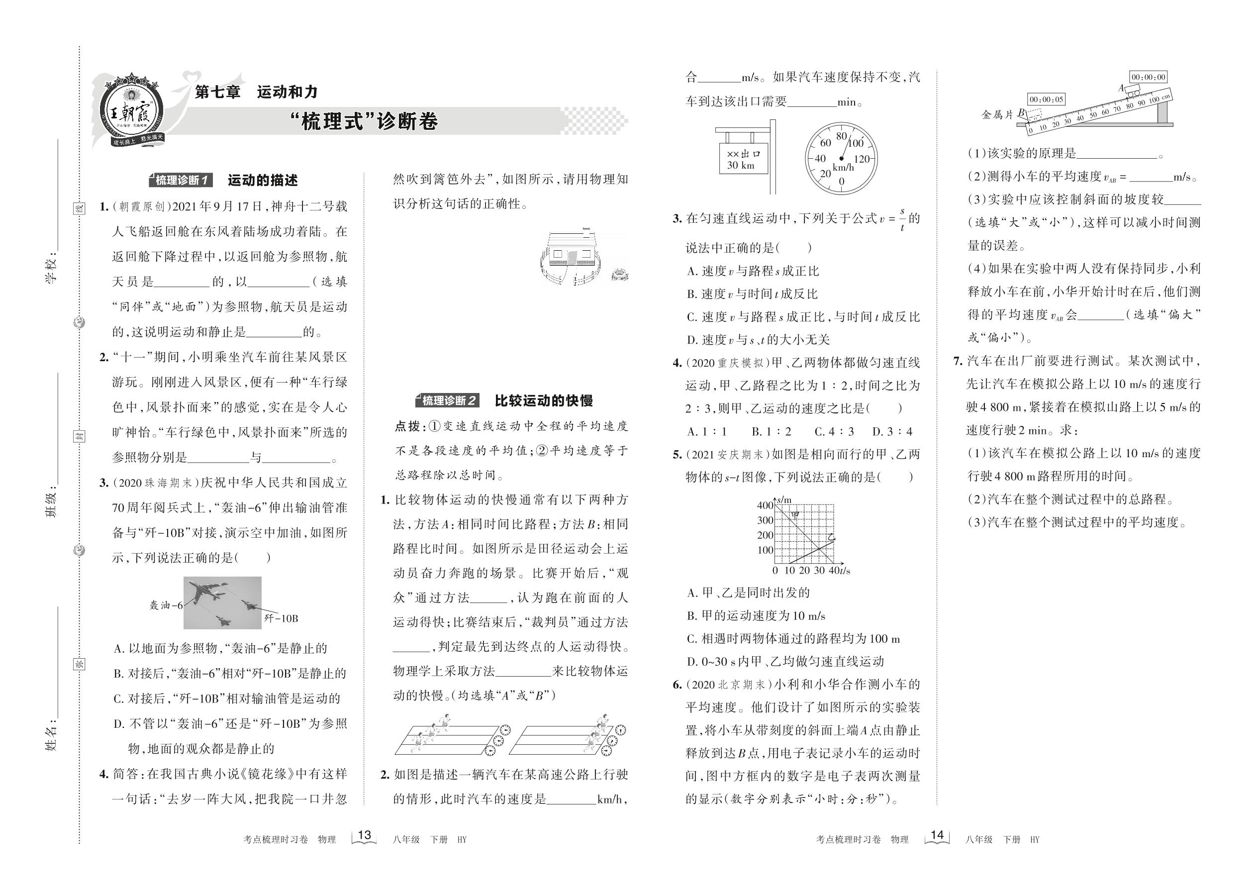 2022下册八年级物理沪粤版 第七章 “梳理式”诊断卷