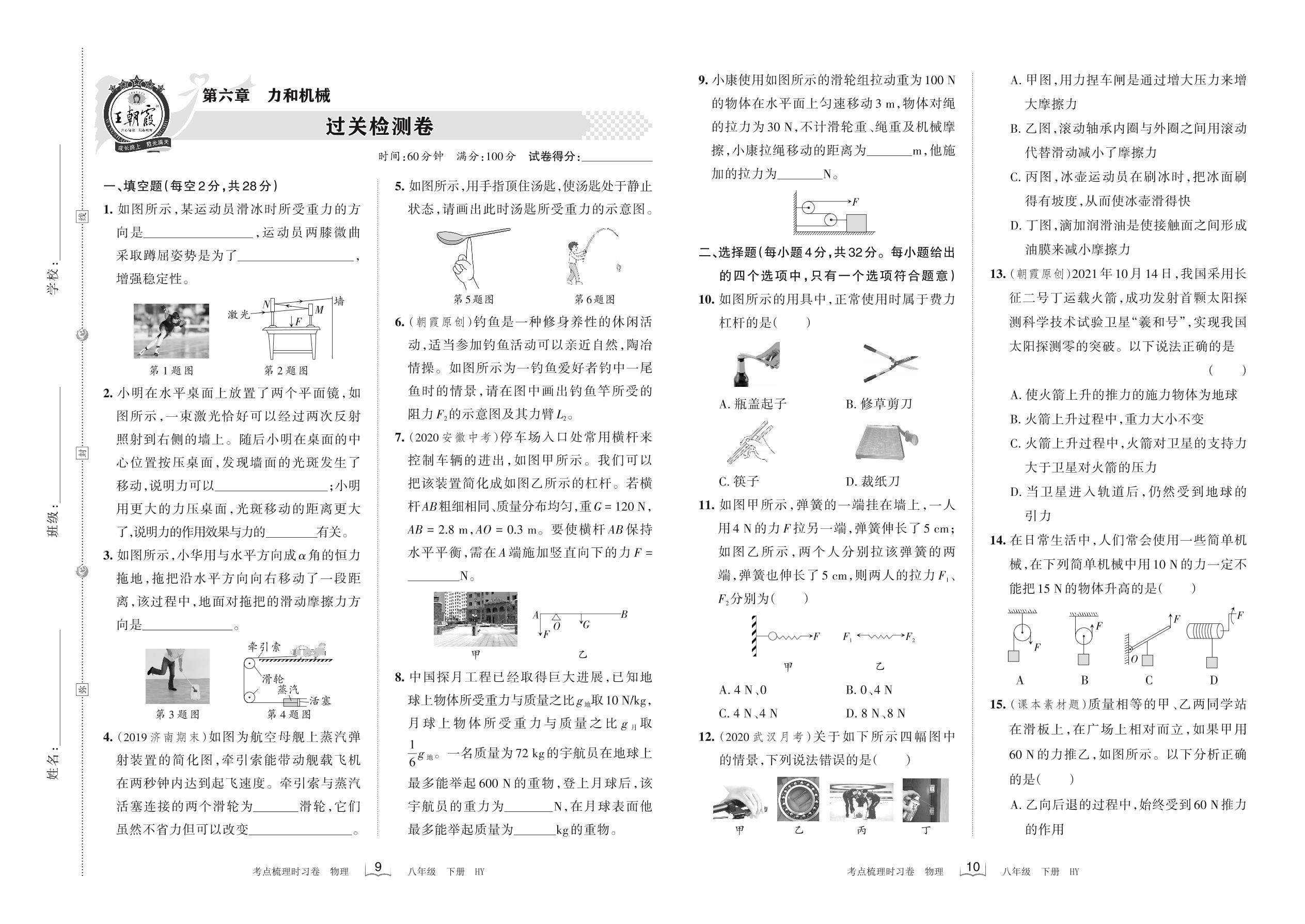 2022下册八年级物理沪粤版 第六章 过关检测卷