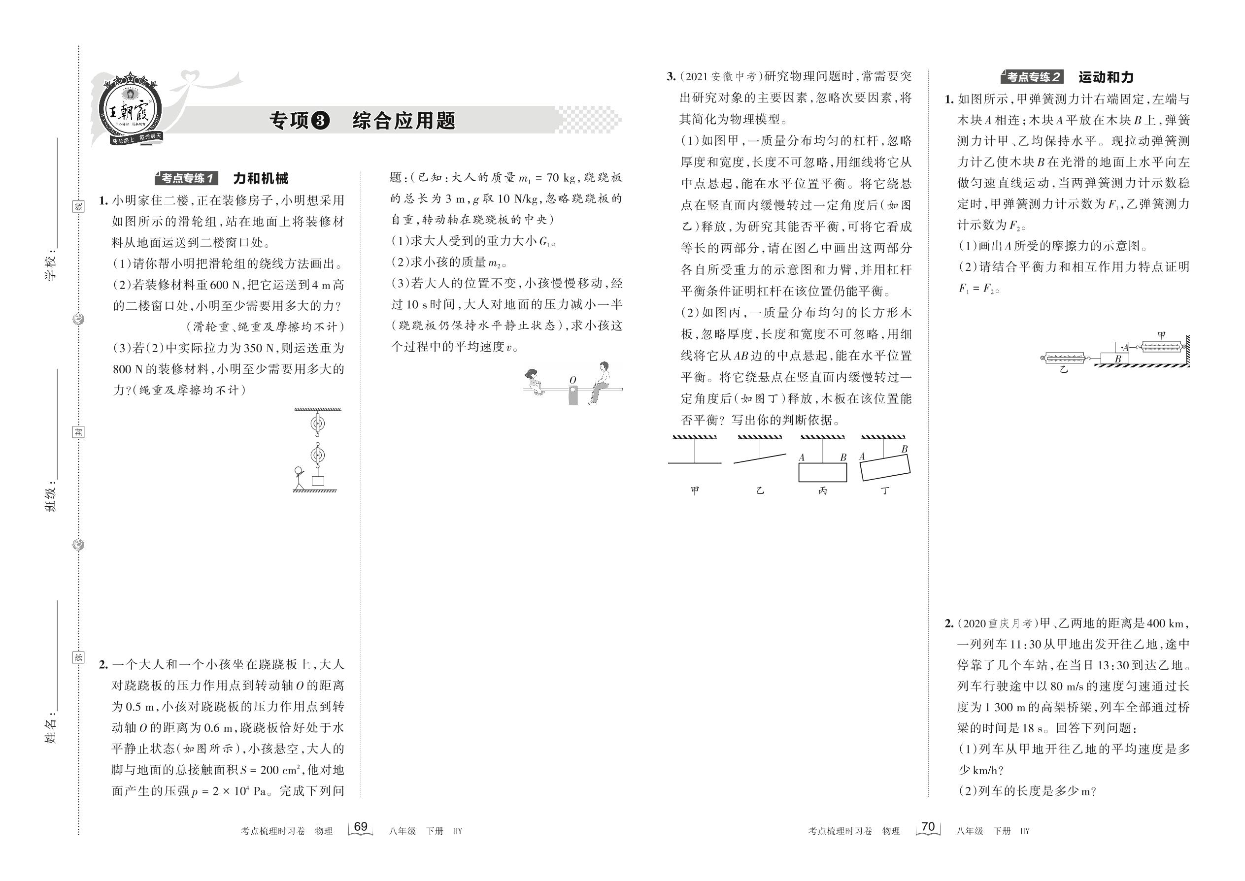 2022下册八年级物理沪粤版 专项3 综合应用题