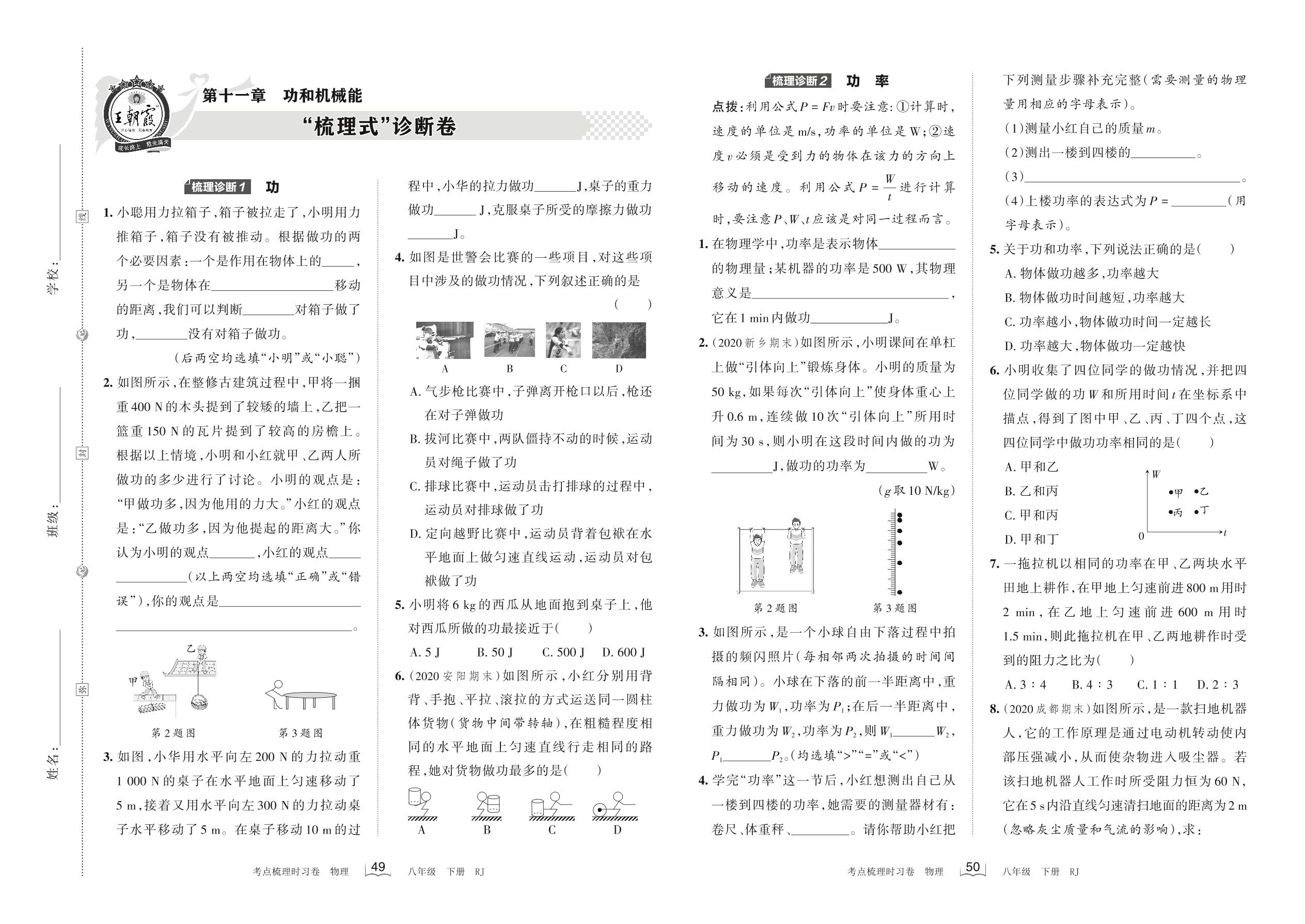 2022下册八年级物理人教版 第十一章 “梳理式”诊断卷