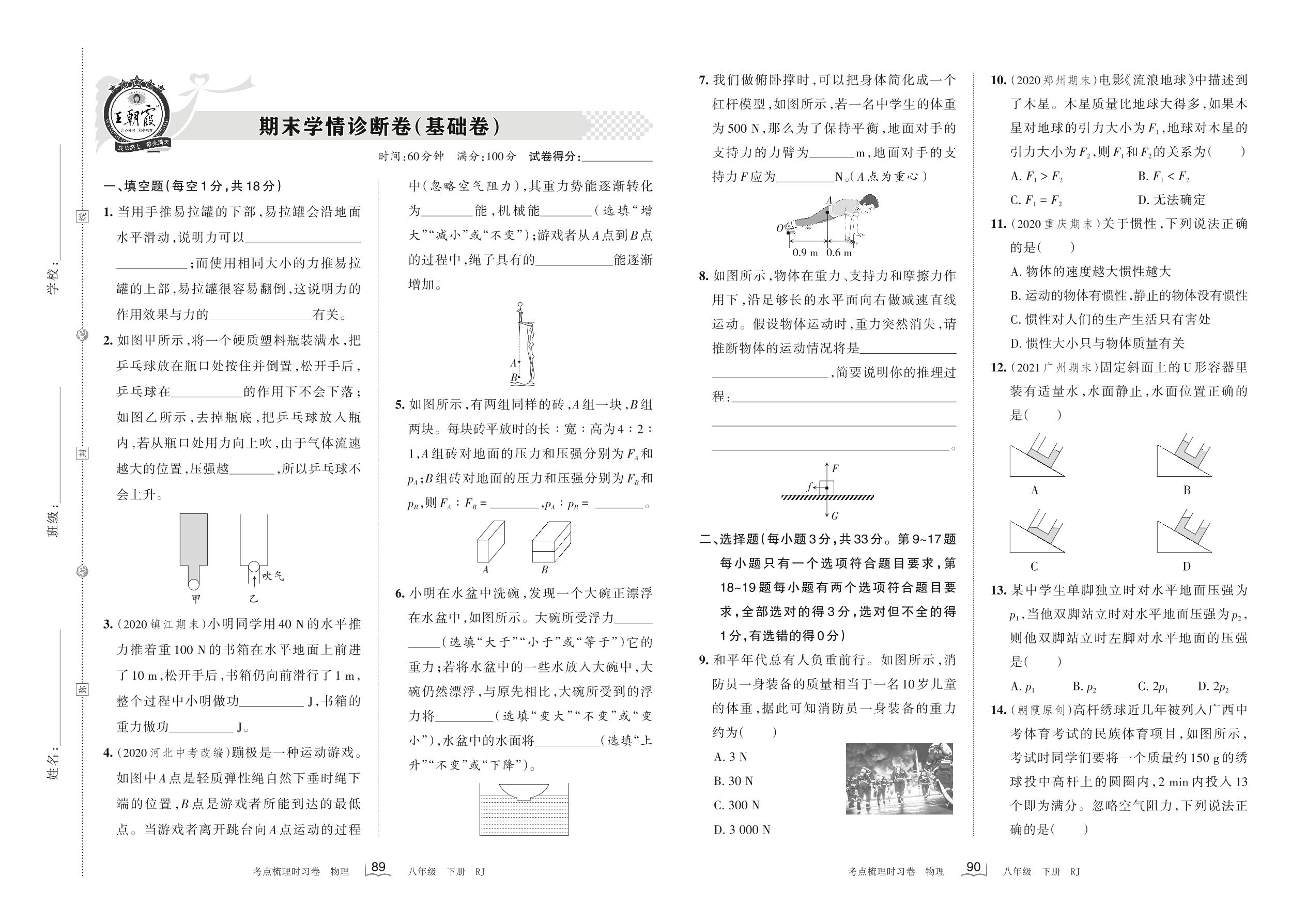 八年级物理人教版下册期末卷