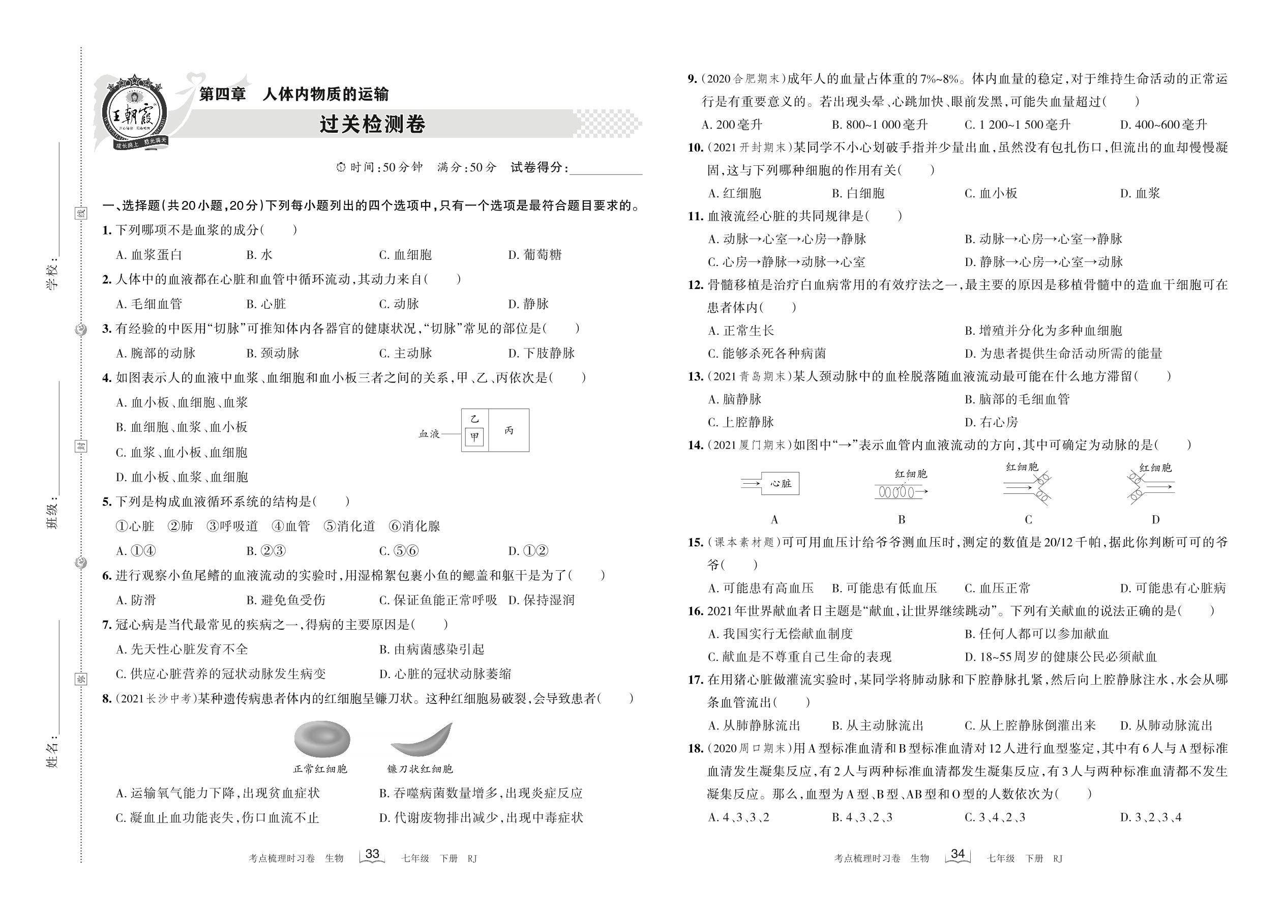 七年级生物人教版下册单元卷