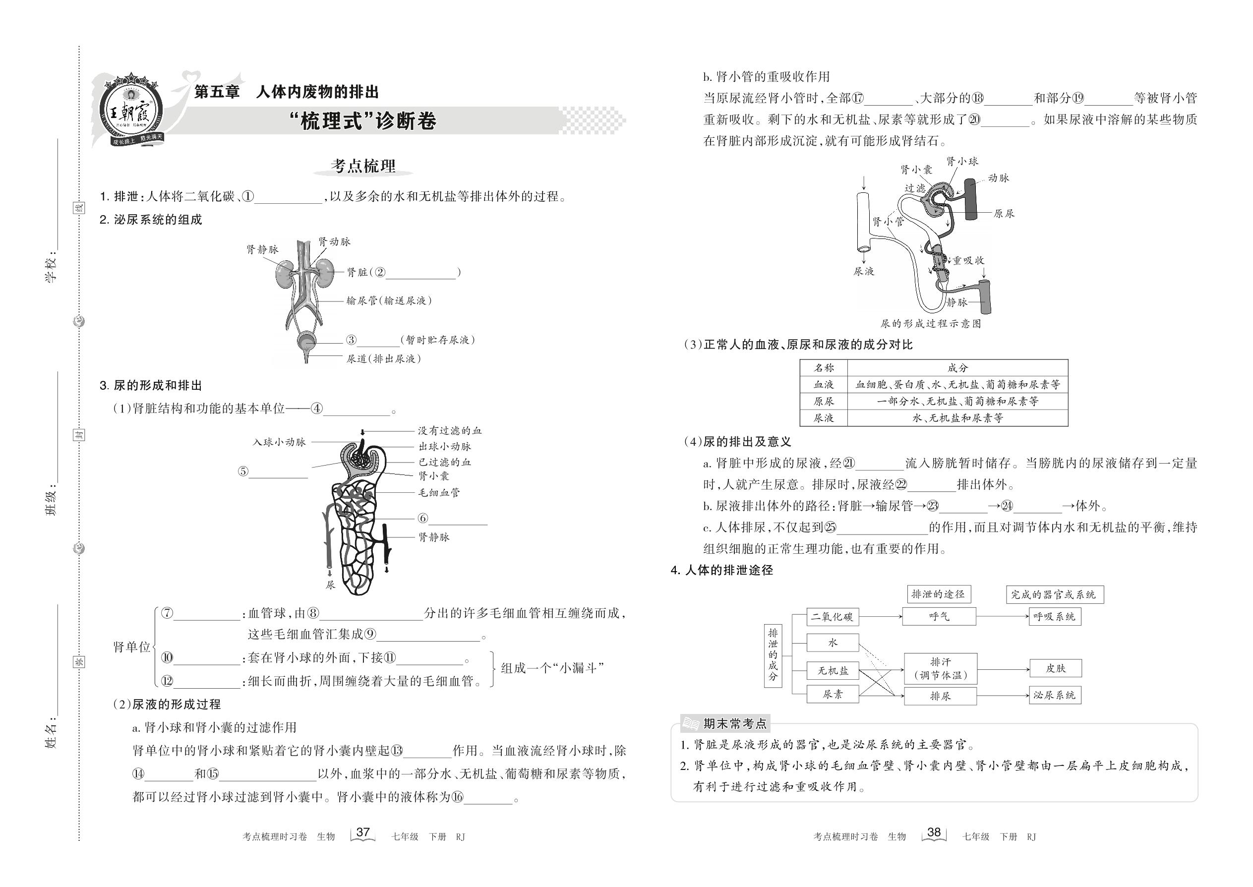 2022下册七年级生物人教版 第五章 “梳理式”诊断卷