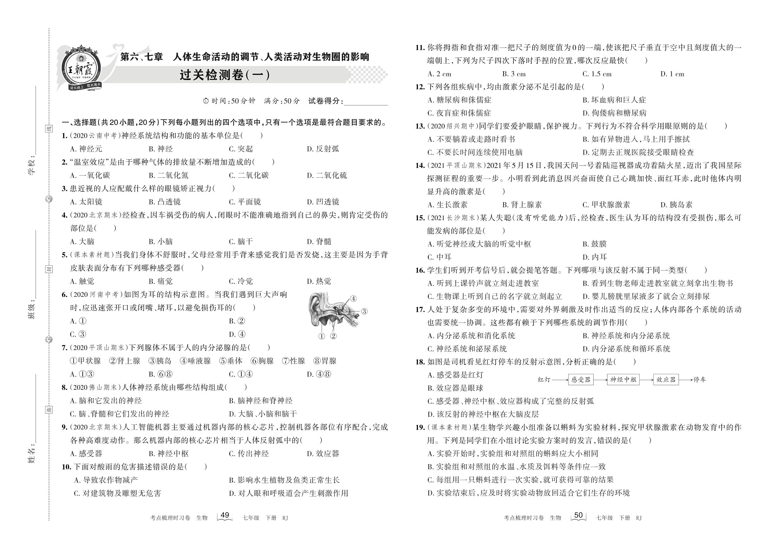 2022下册七年级生物人教版 第六、七章 过关检测卷(一)