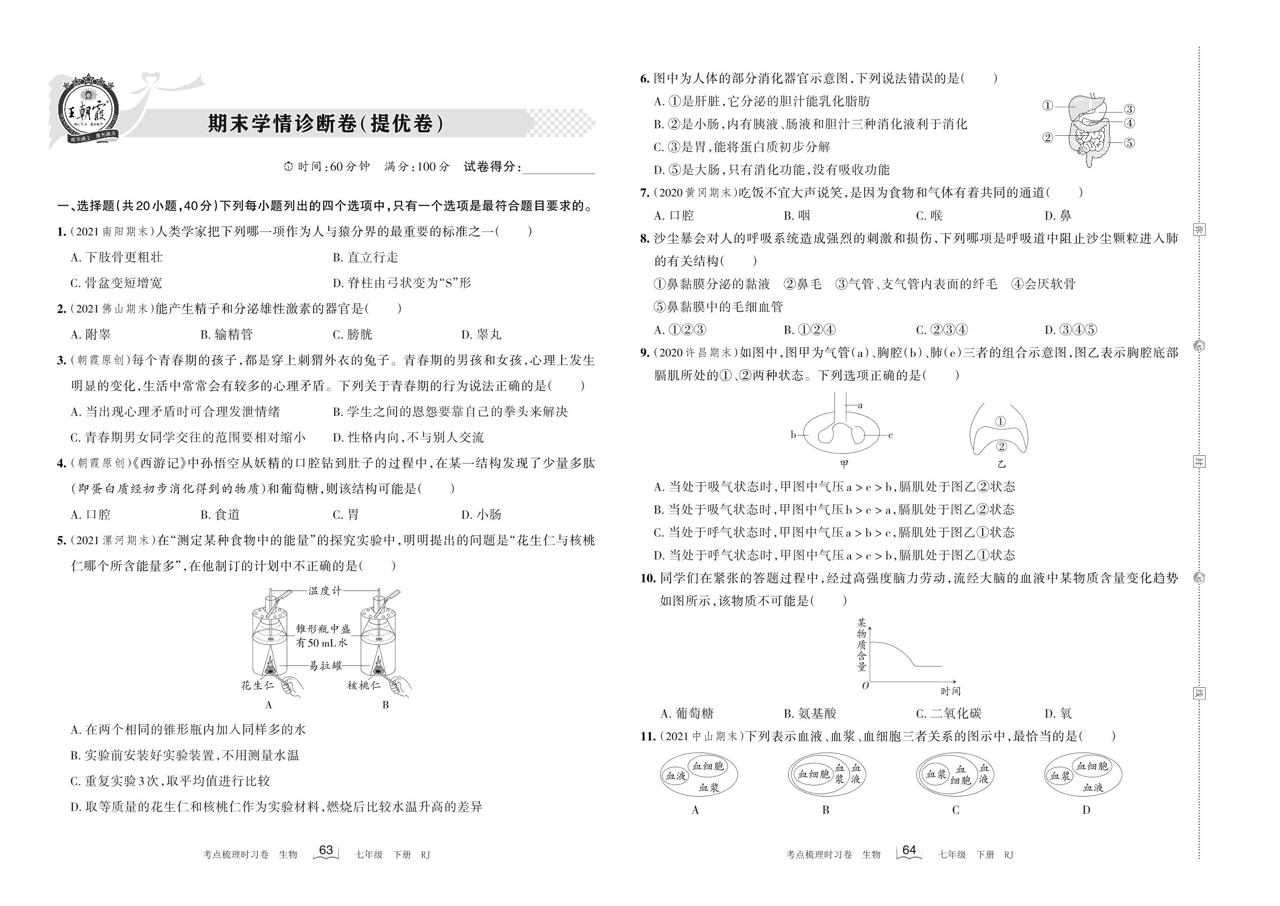 2022下册七年级生物人教版 期末学情诊断卷(提优卷)