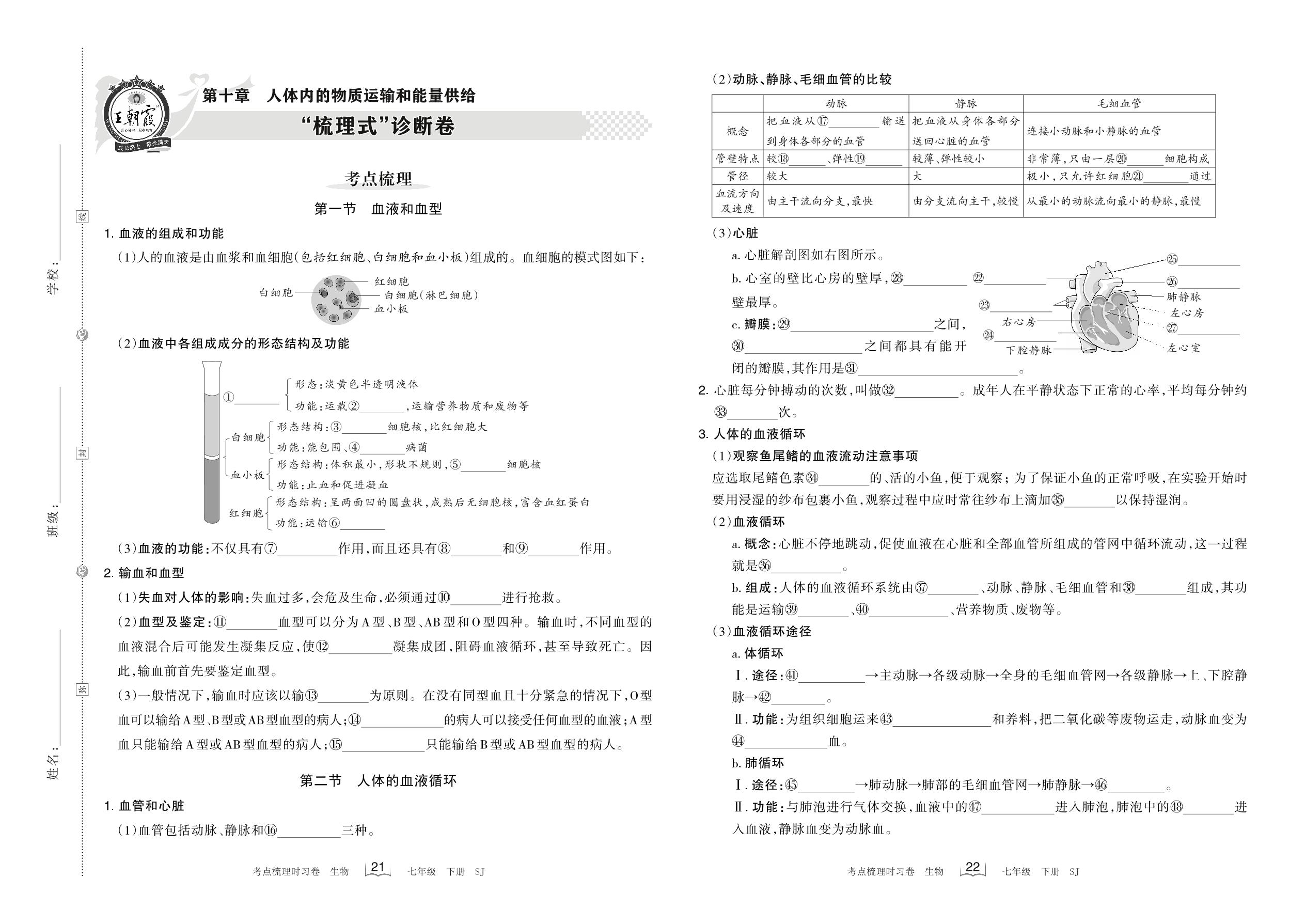 2022下册七年级生物苏教版 第十章 “梳理式”诊断卷