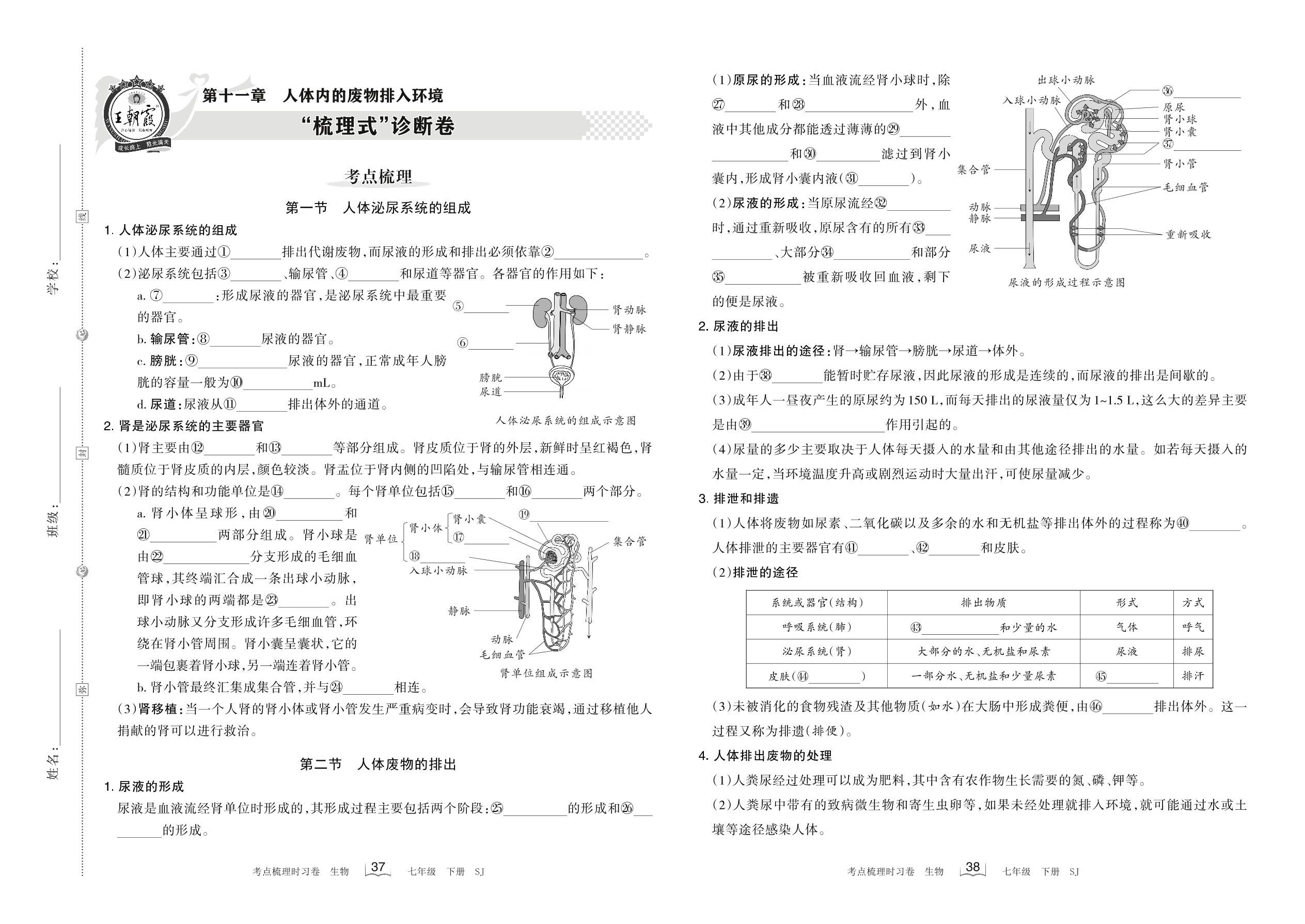2022下册七年级生物苏教版 第十一章 “梳理式”诊断卷
