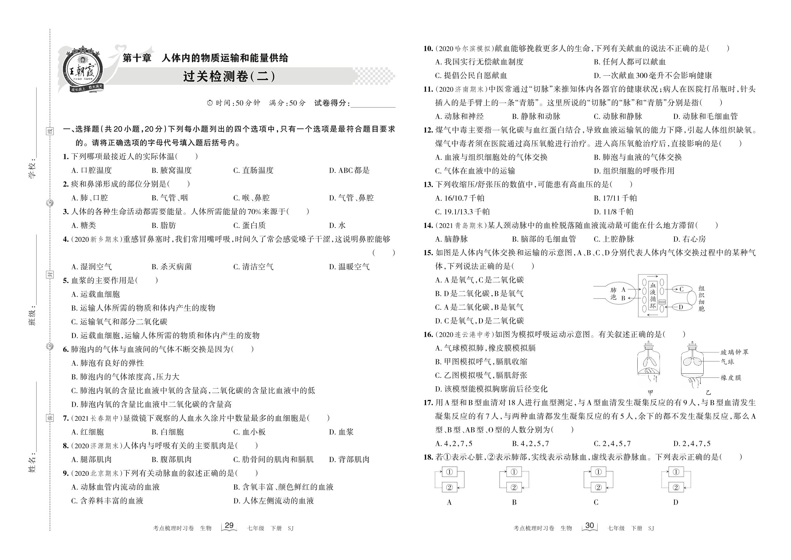 2022下册七年级生物苏教版 第十章 过关检测卷(二)