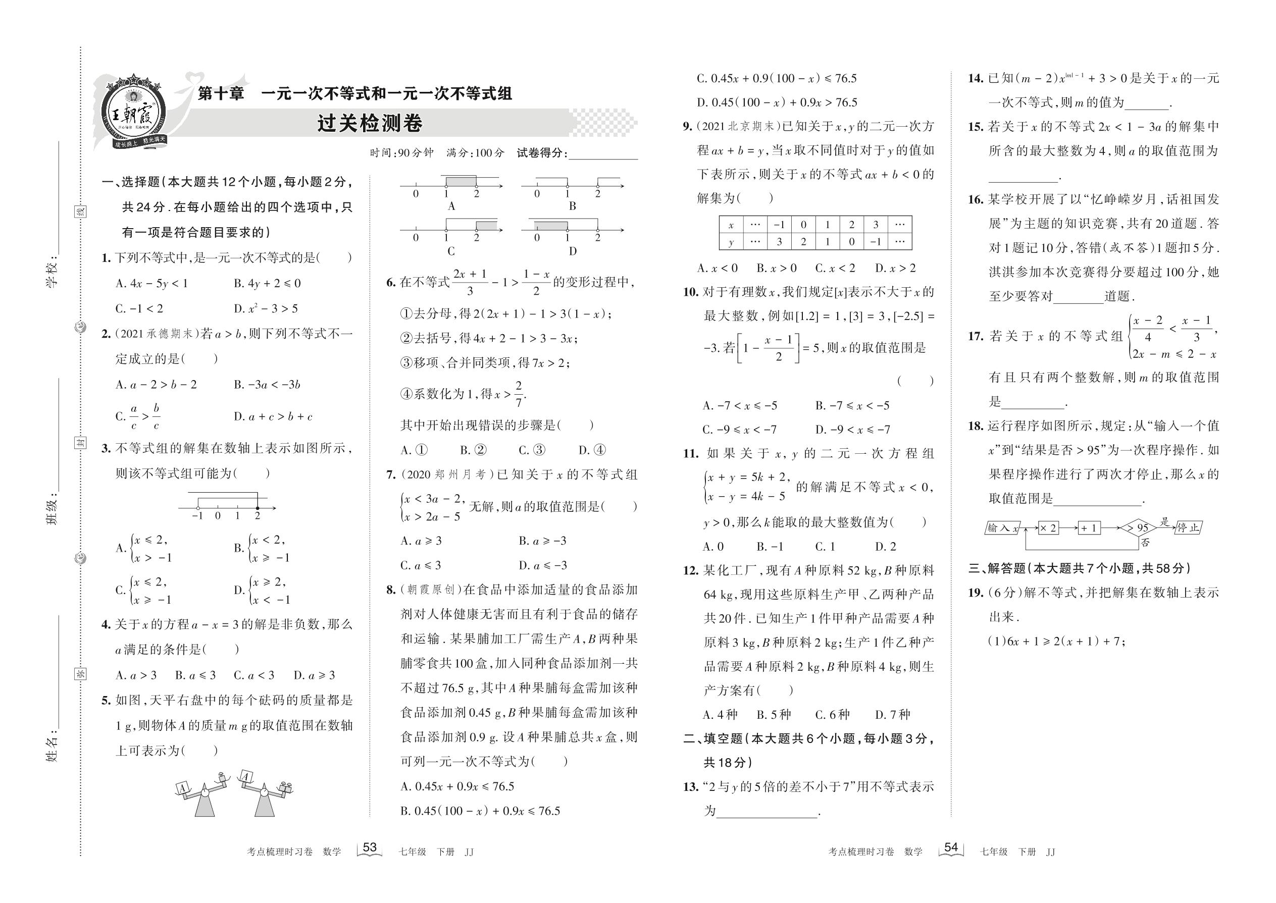 2022下册七年级数学冀教版 第十章 过关检测卷