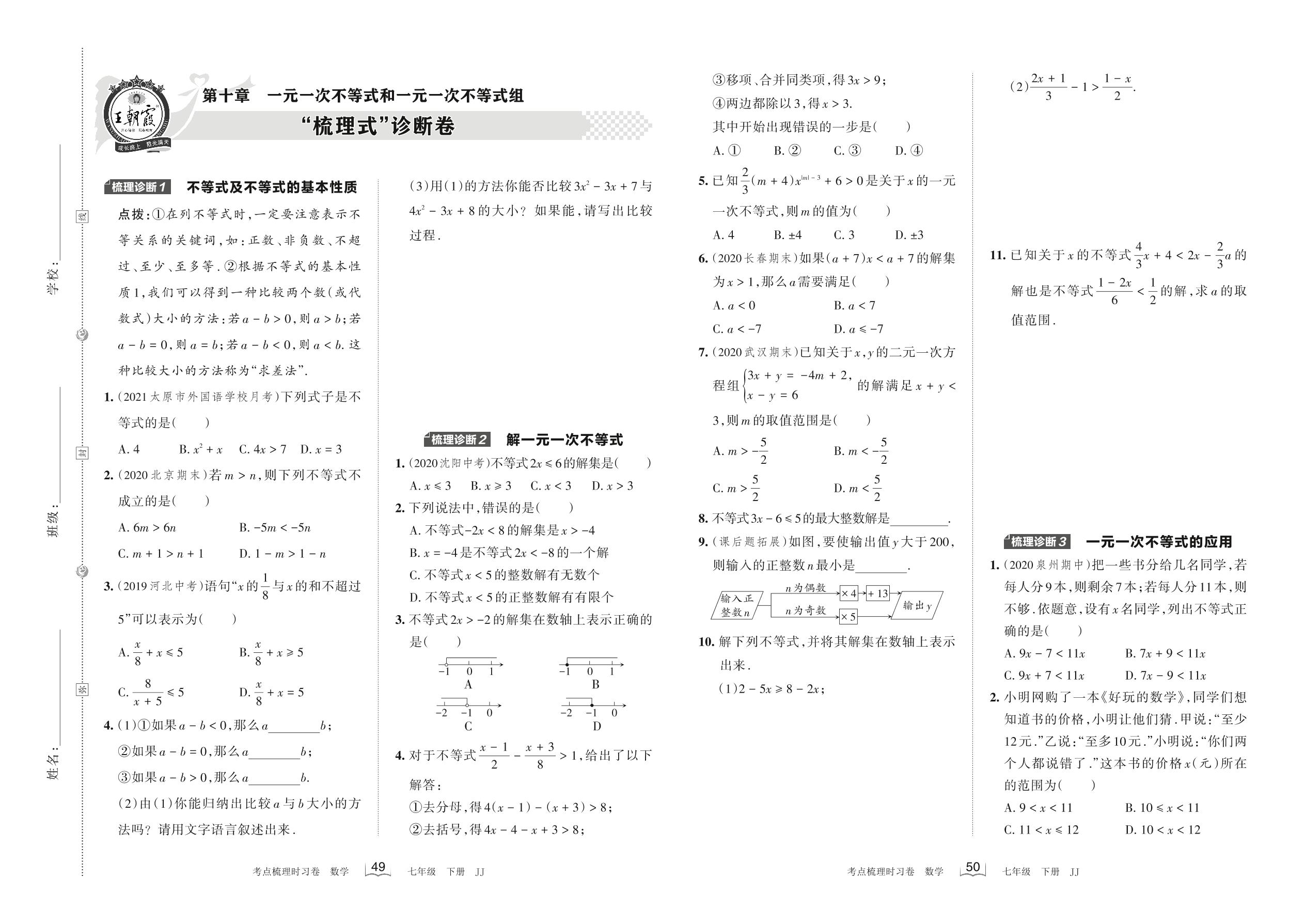 2022下册七年级数学冀教版 第十章 “梳理式”诊断卷