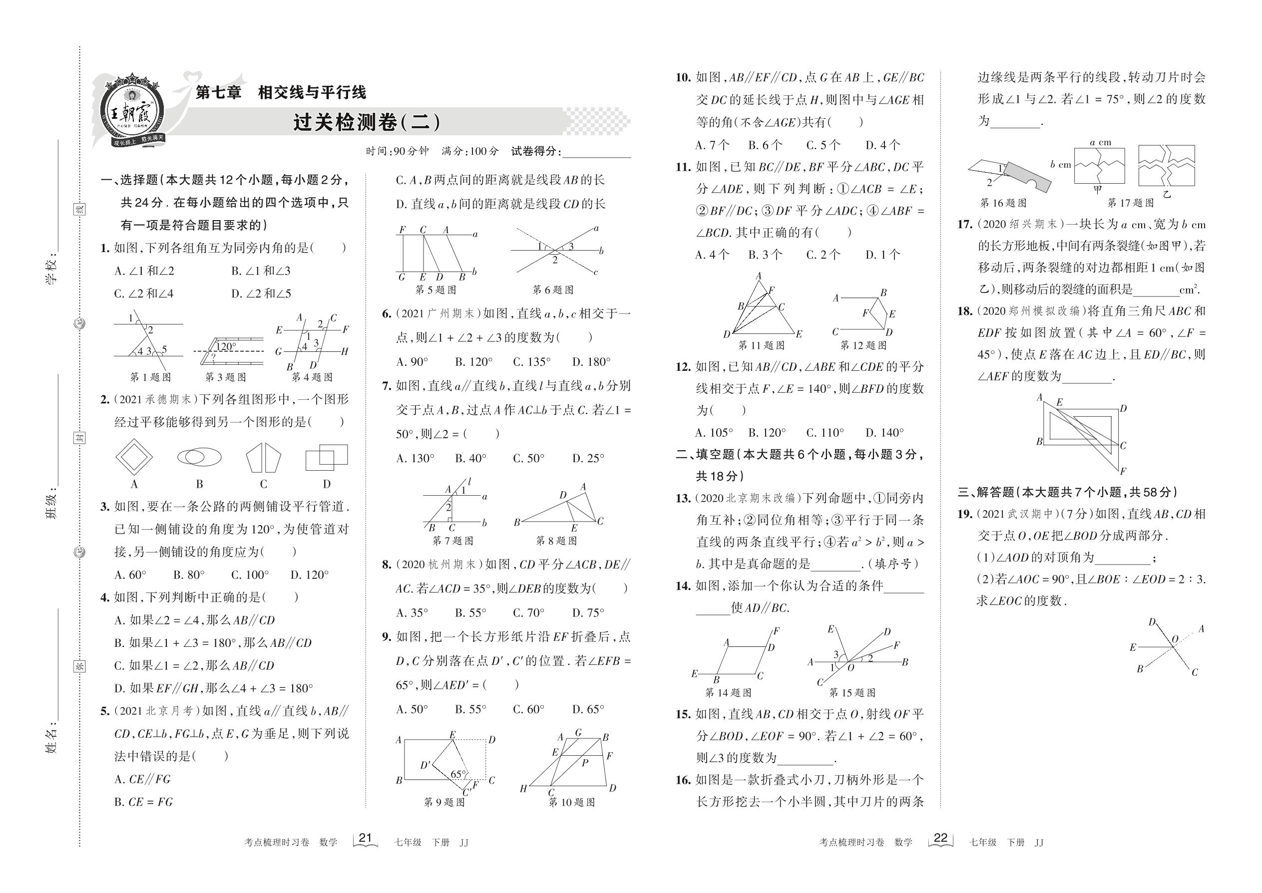 2022下册七年级数学冀教版 第七章 过关检测卷(二)