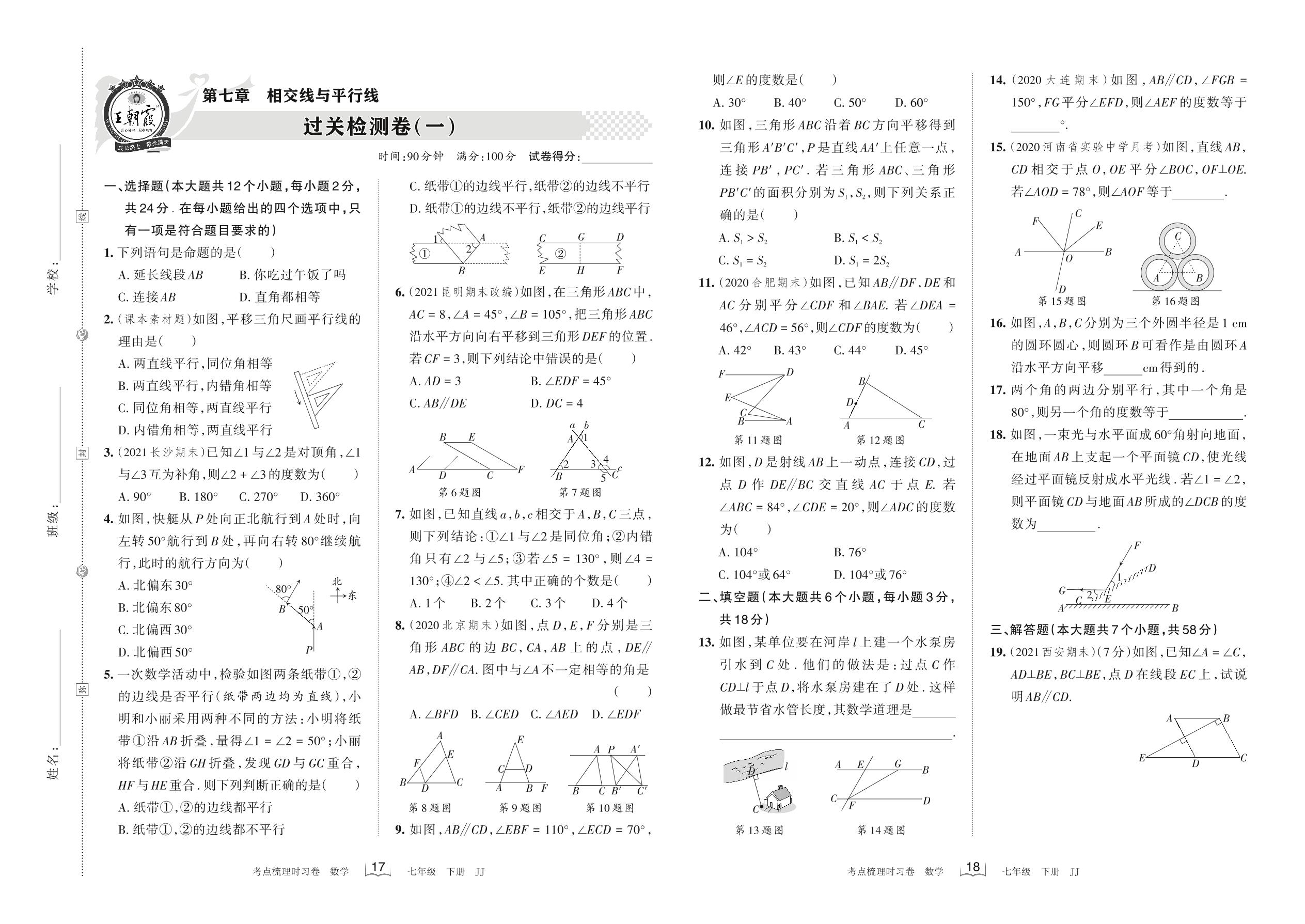 2022下册七年级数学冀教版 第七章 过关检测卷(一)