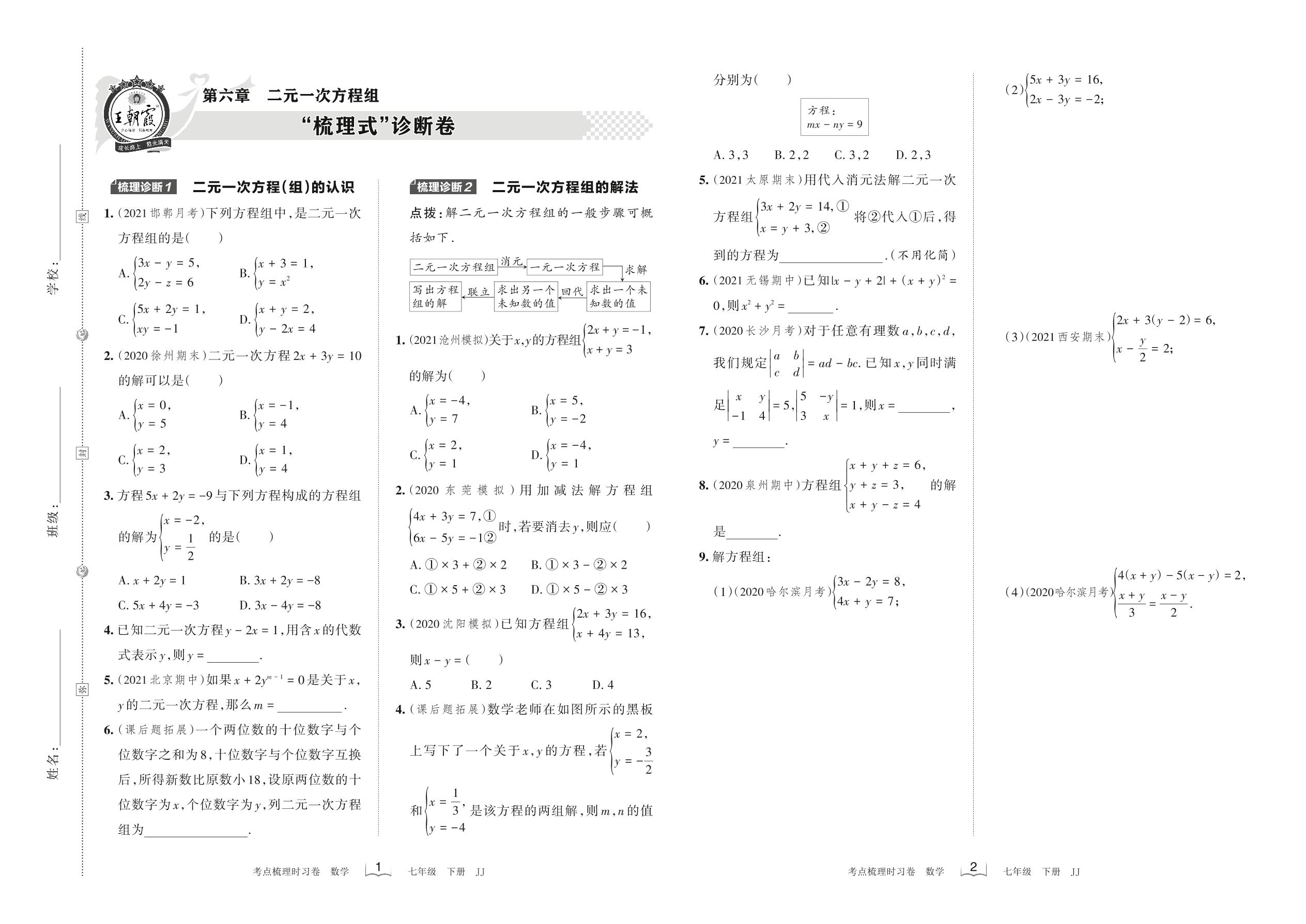 2022下册七年级数学冀教版 第六章 “梳理式”诊断卷