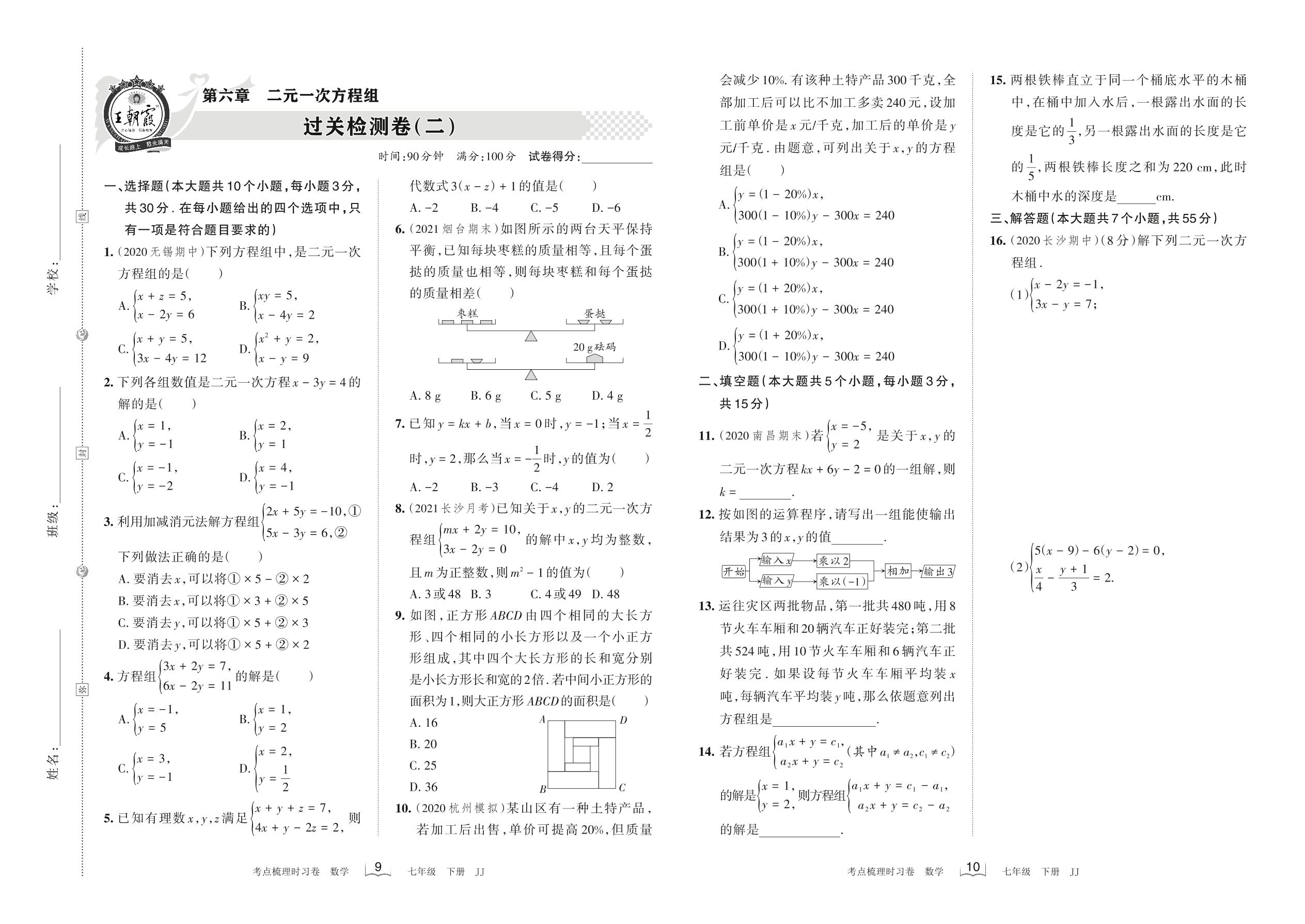 七年级数学冀教版下册单元卷