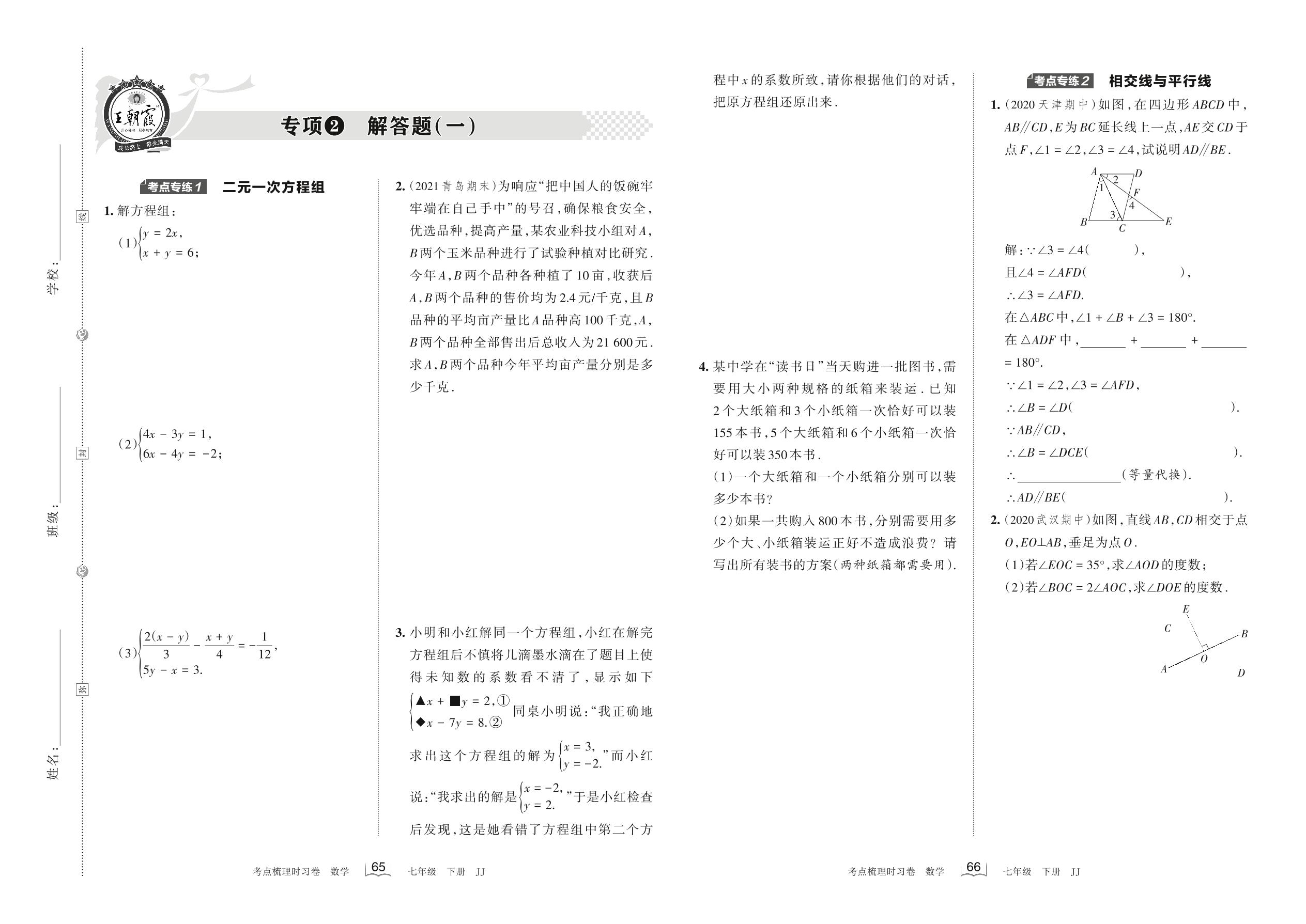 2022下册七年级数学冀教版 专项2 解答题(一)