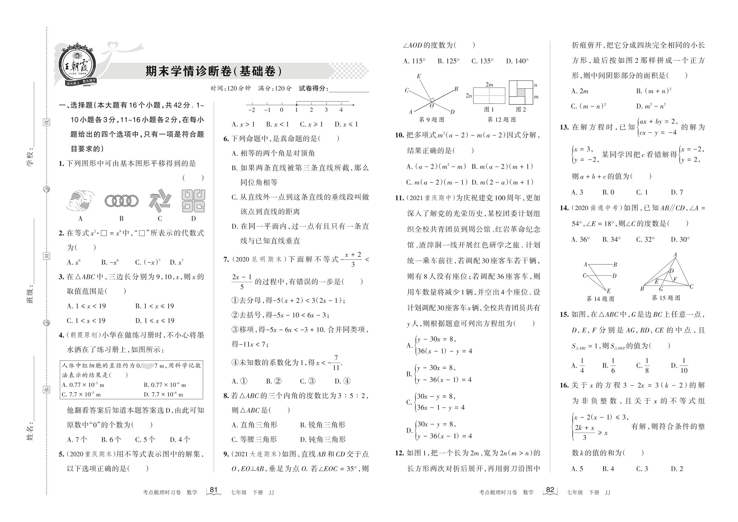 2022下册七年级数学冀教版 期末学情诊断卷(基础卷)