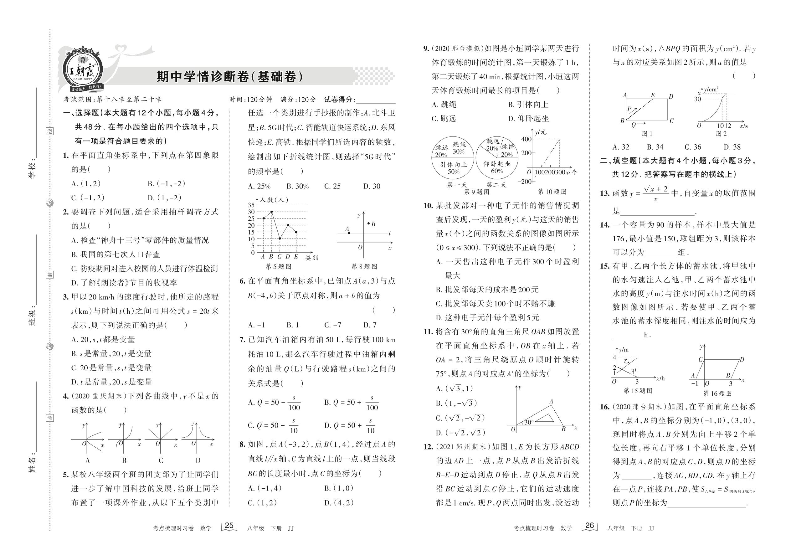 2022下册八年级数学冀教版 期中学情诊断卷(基础卷)