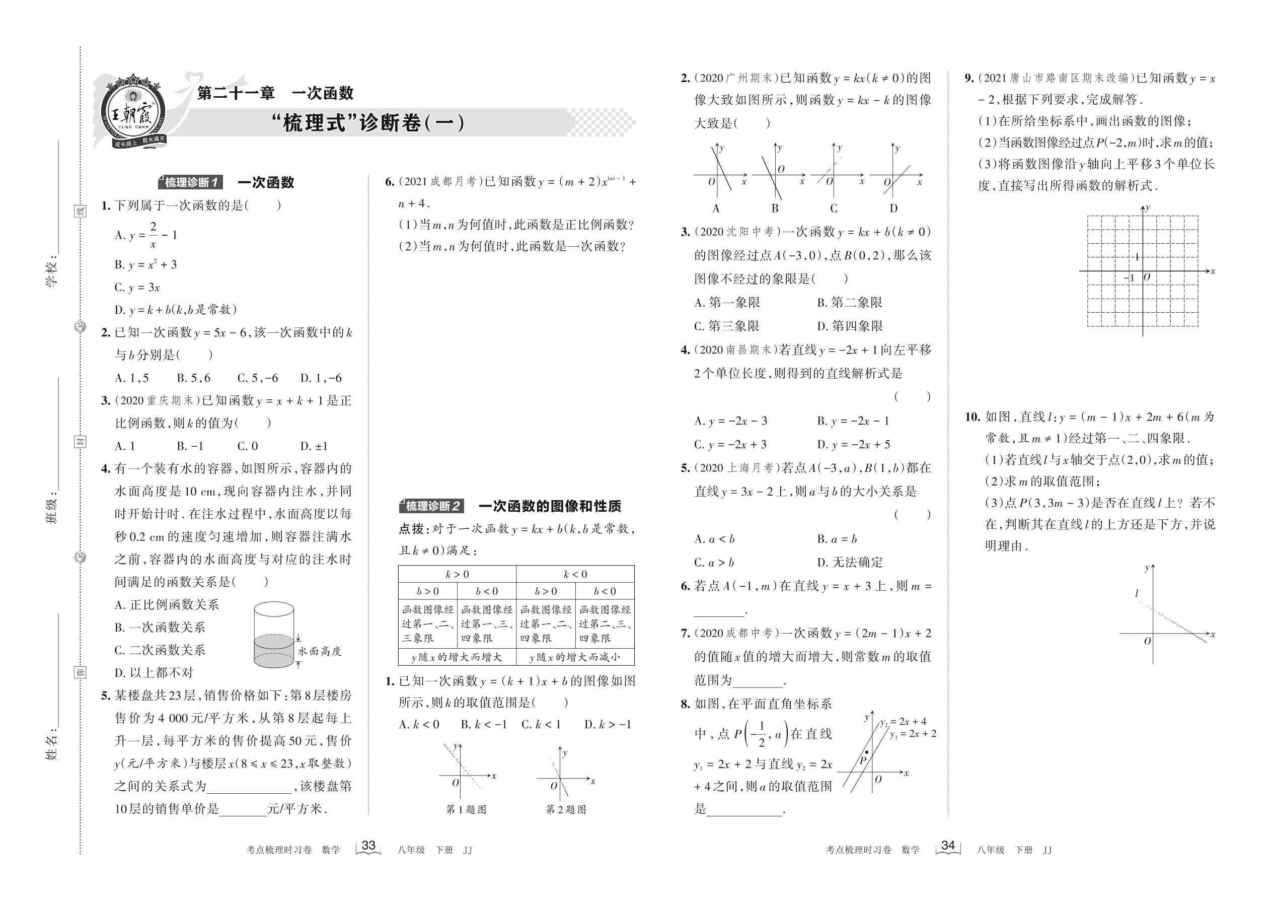 2022下册八年级数学冀教版 第二十一章 “梳理式”诊断卷 (一)