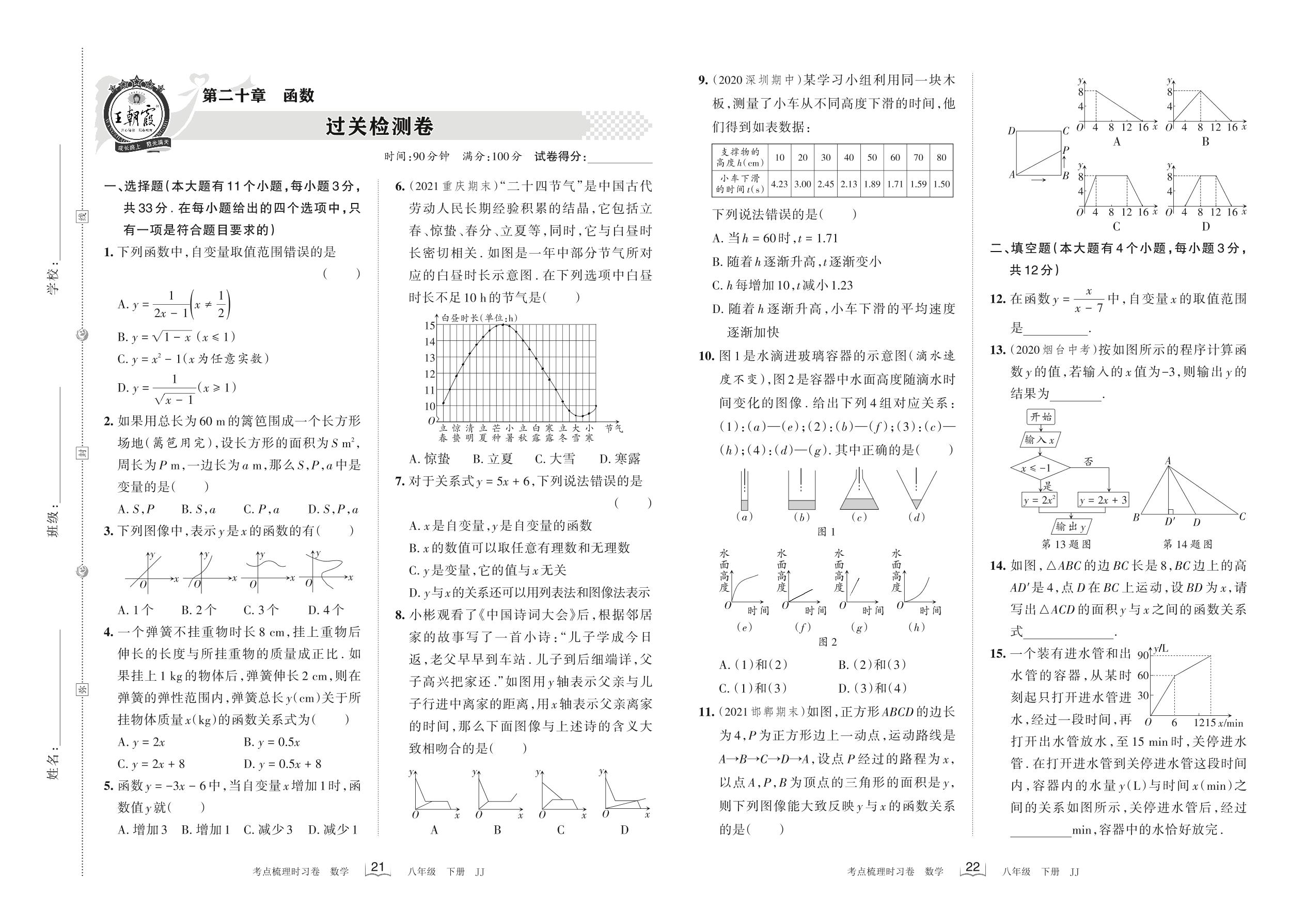 2022下册八年级数学冀教版 第二十章 过关检测卷