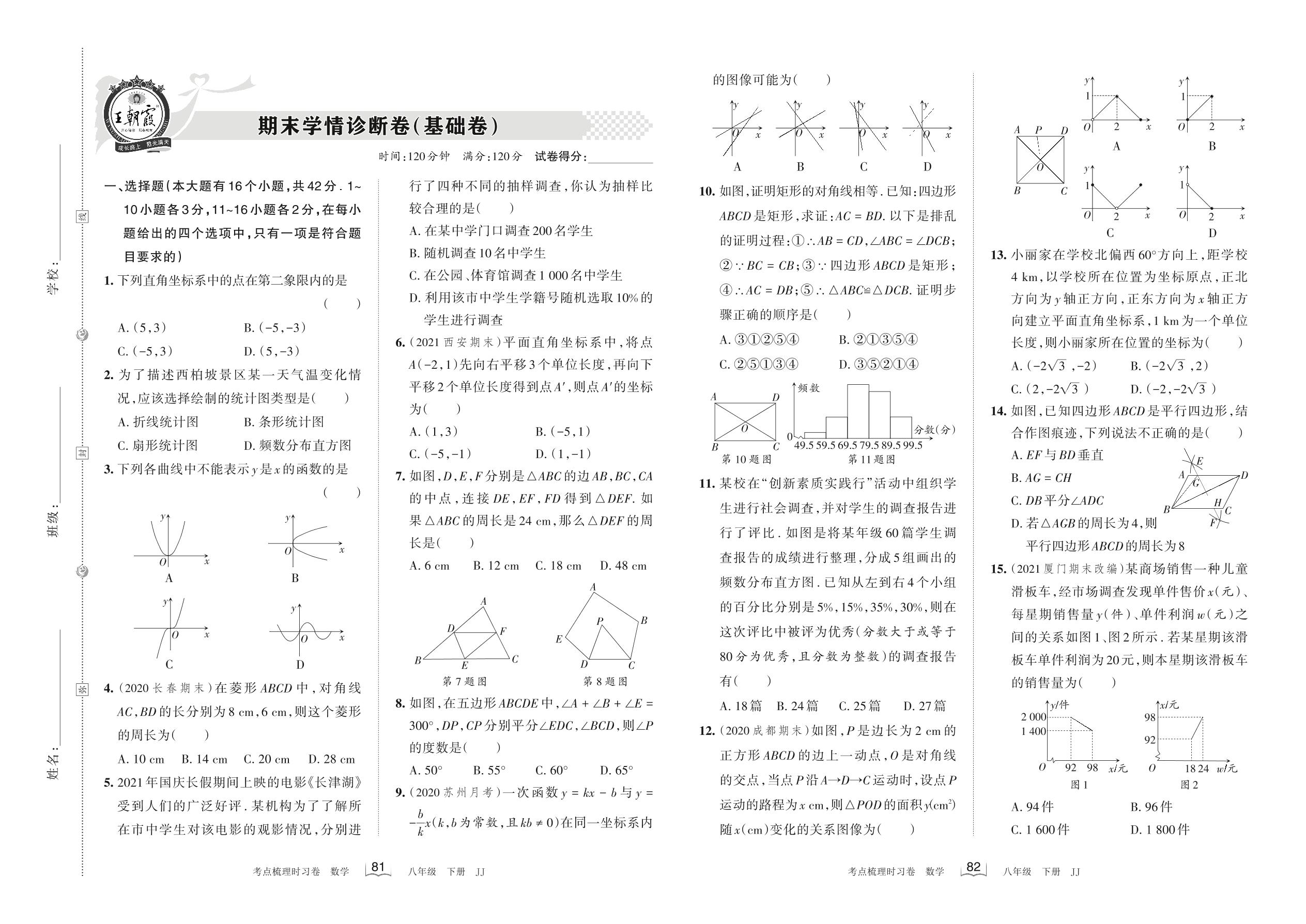 2022下册八年级数学冀教版 期末学情诊断卷(基础卷)
