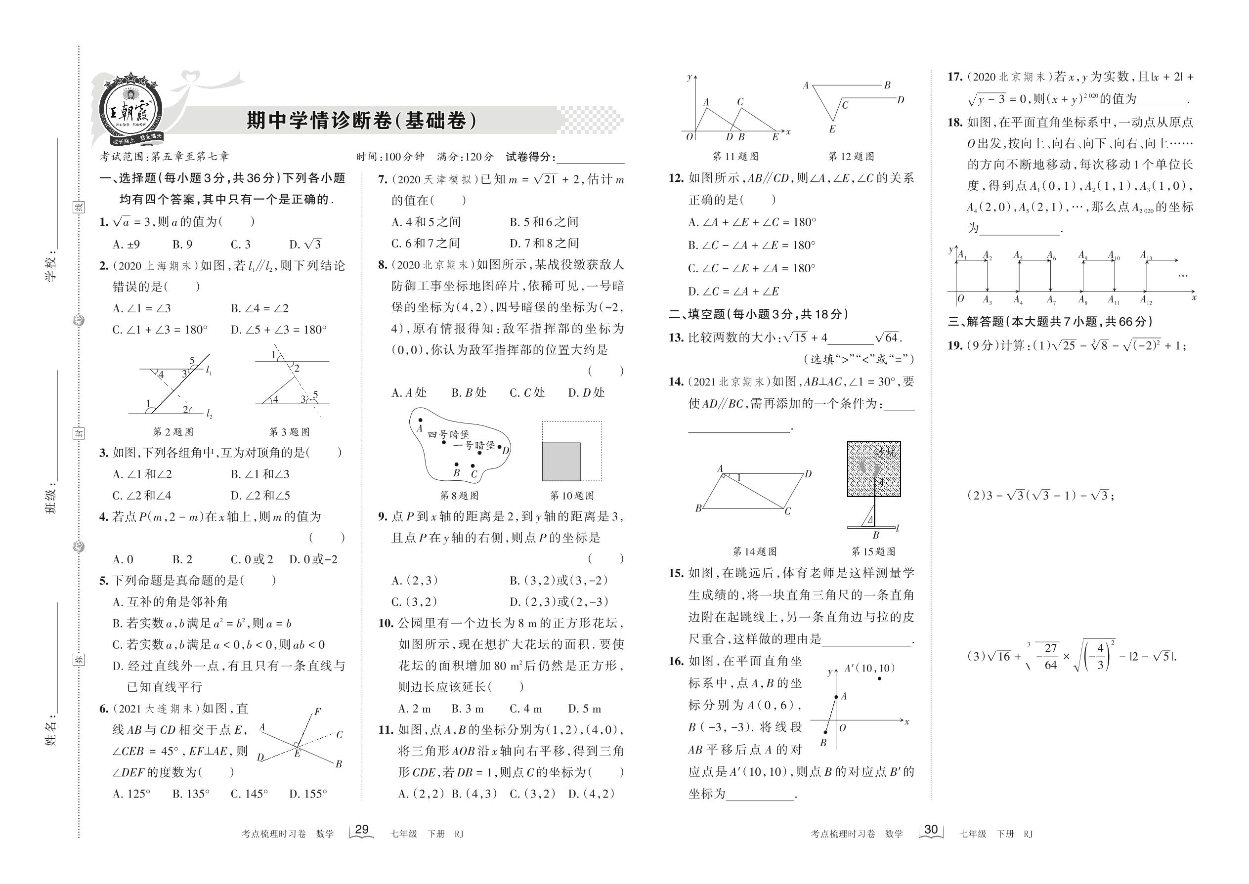 2022下册七年级数学人教版 期中学情诊断卷(基础卷)