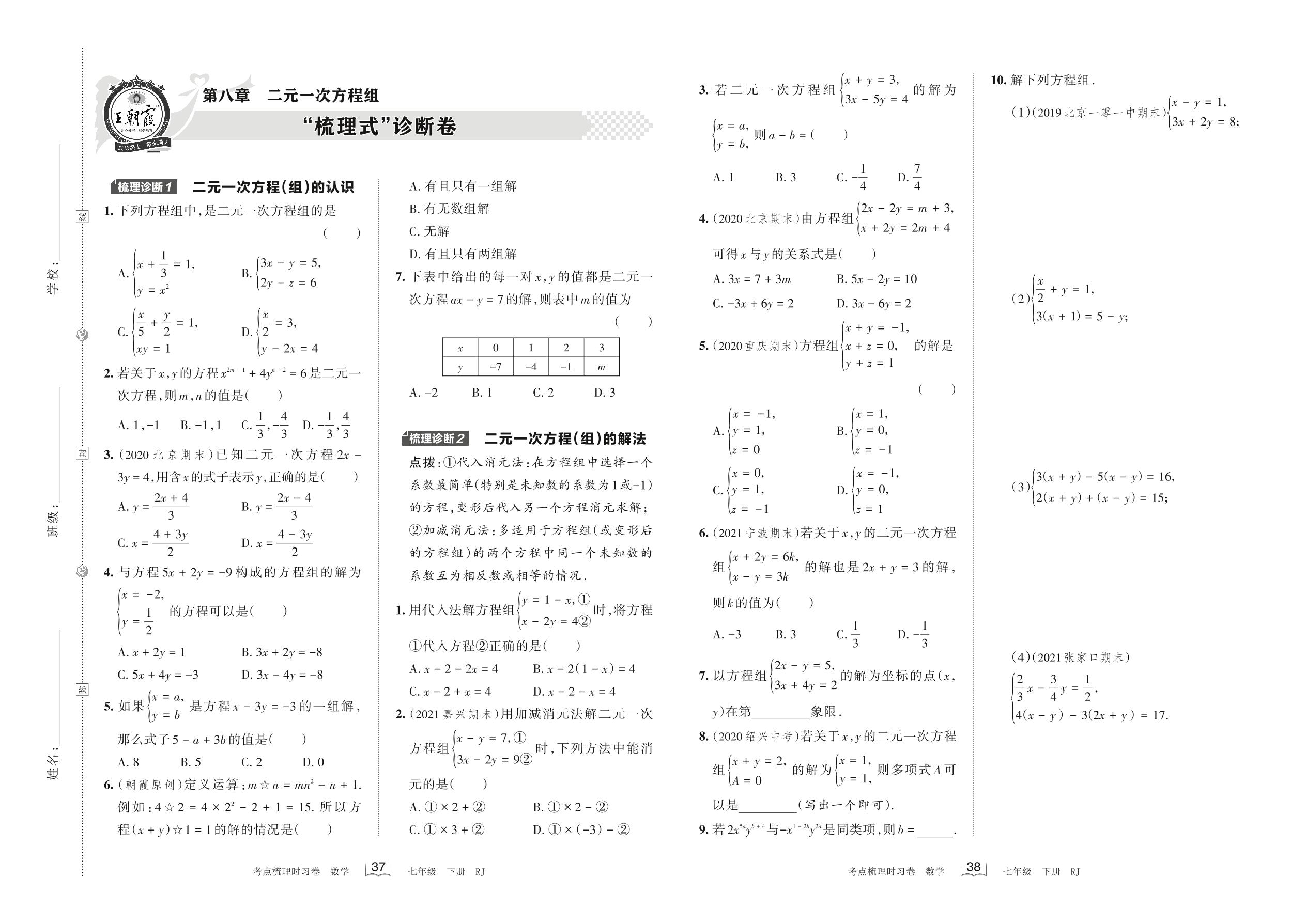 2022下册七年级数学人教版 第八章 “梳理式”诊断卷