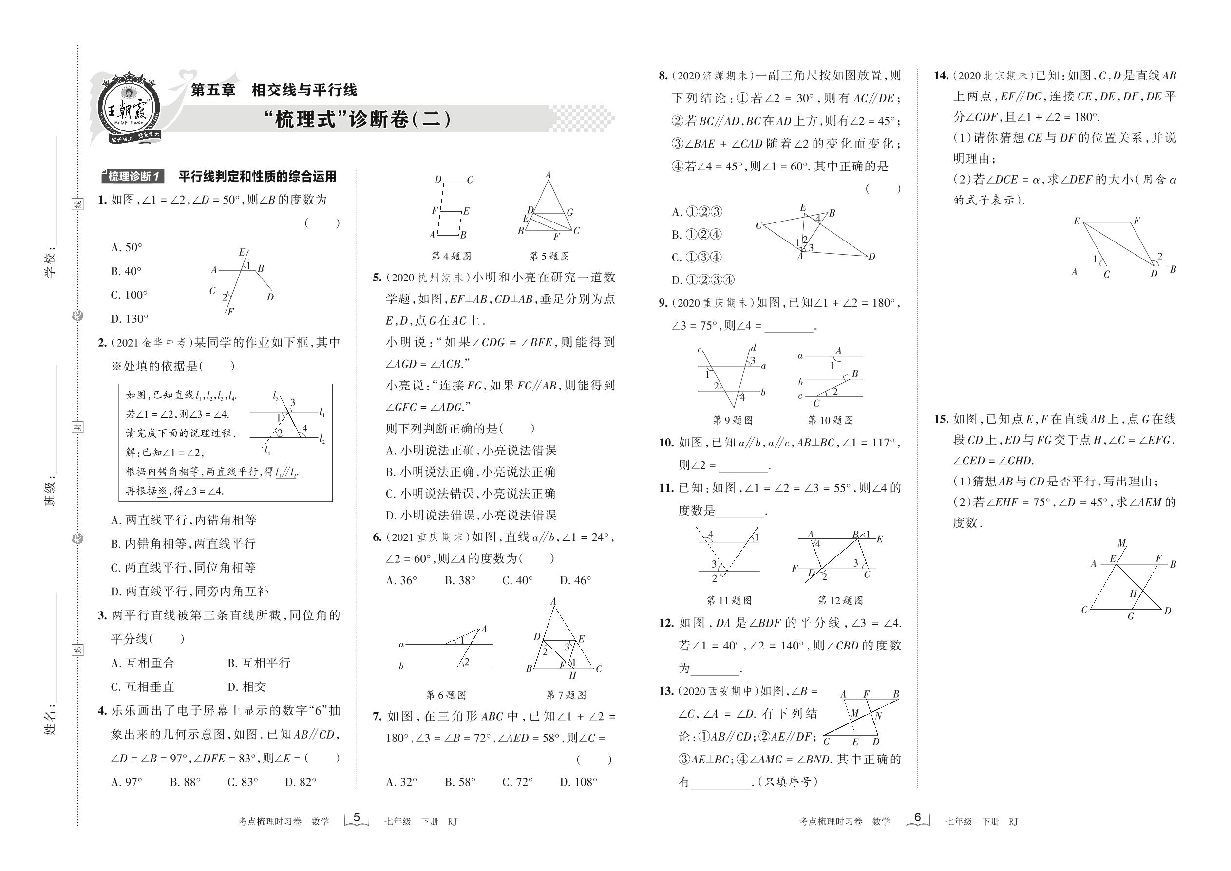 2022下册七年级数学人教版 第五章 “梳理式”诊断卷(二)