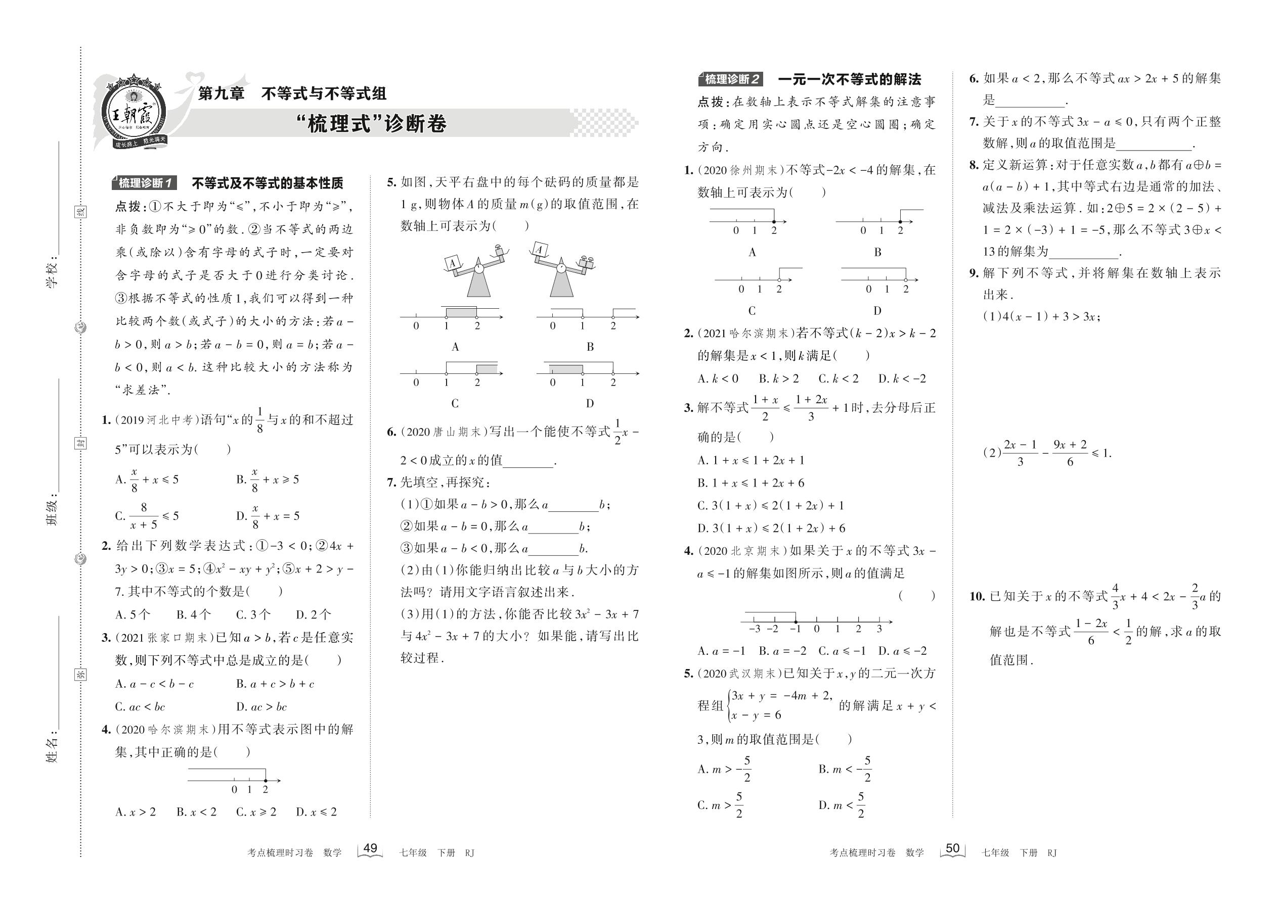 2022下册七年级数学人教版 第九章 “梳理式”诊断卷