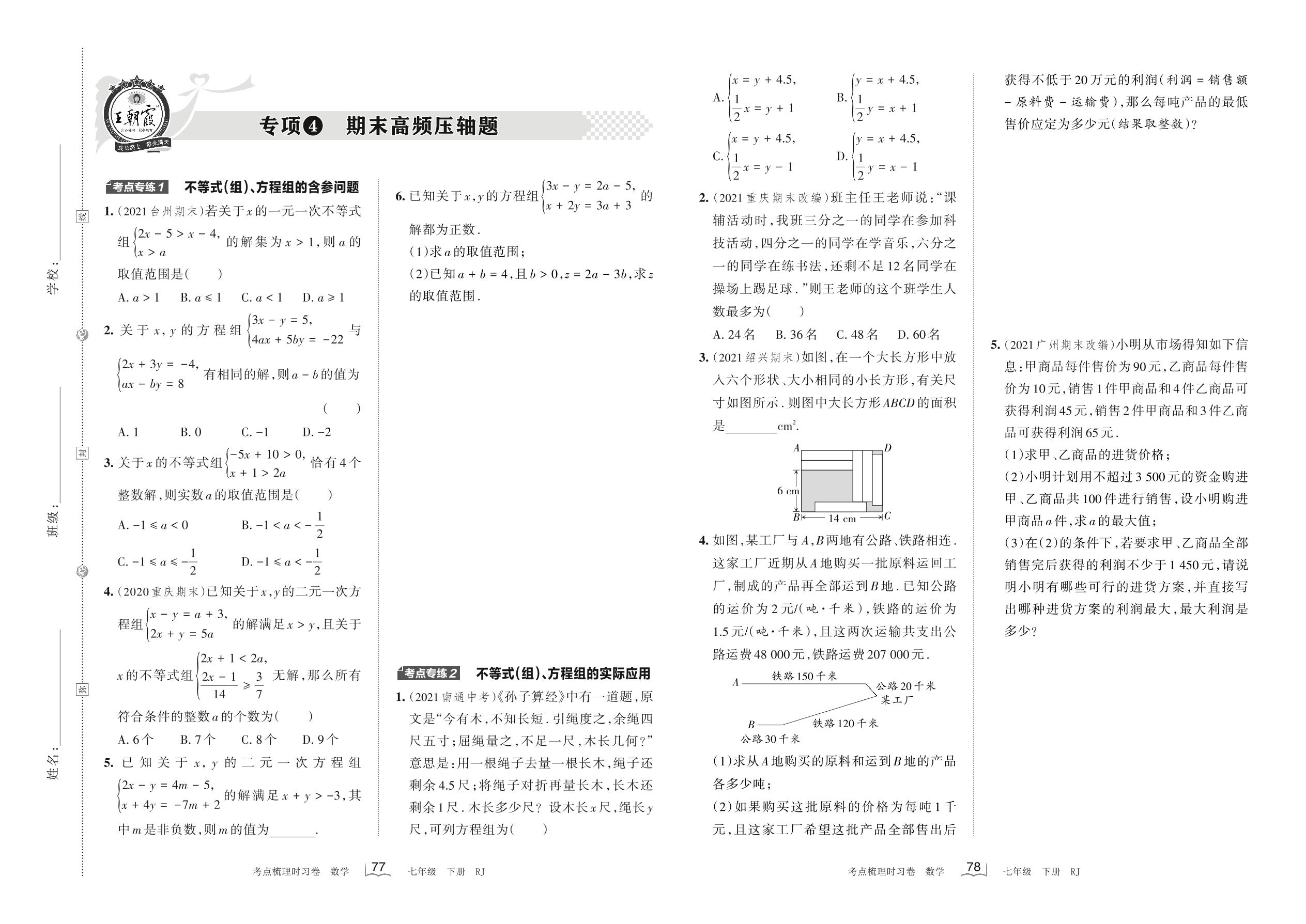 2022下册七年级数学人教版 专项4 期末高频压轴题