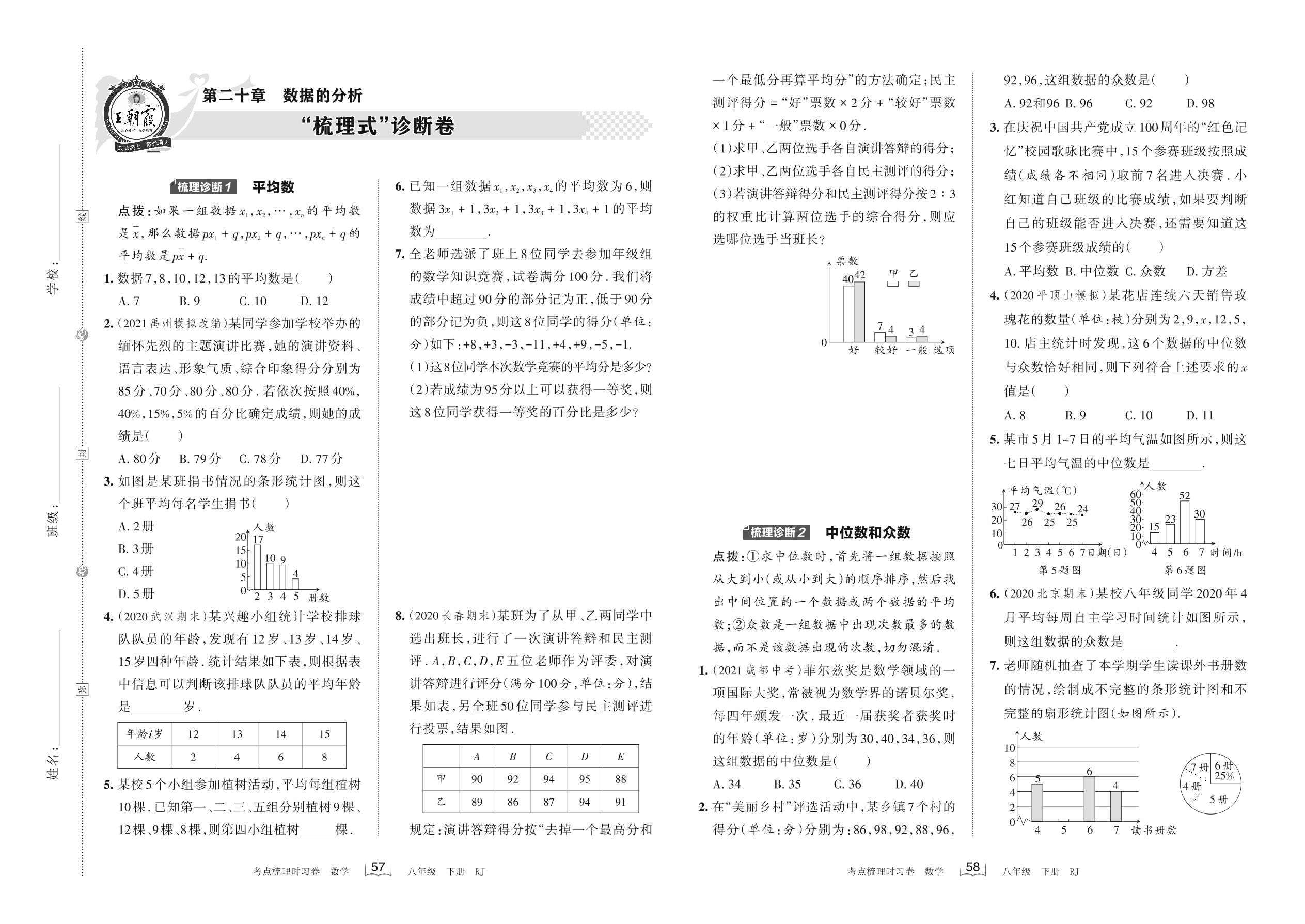 2022下册八年级数学人教版 第二十章 “梳理式”诊断卷