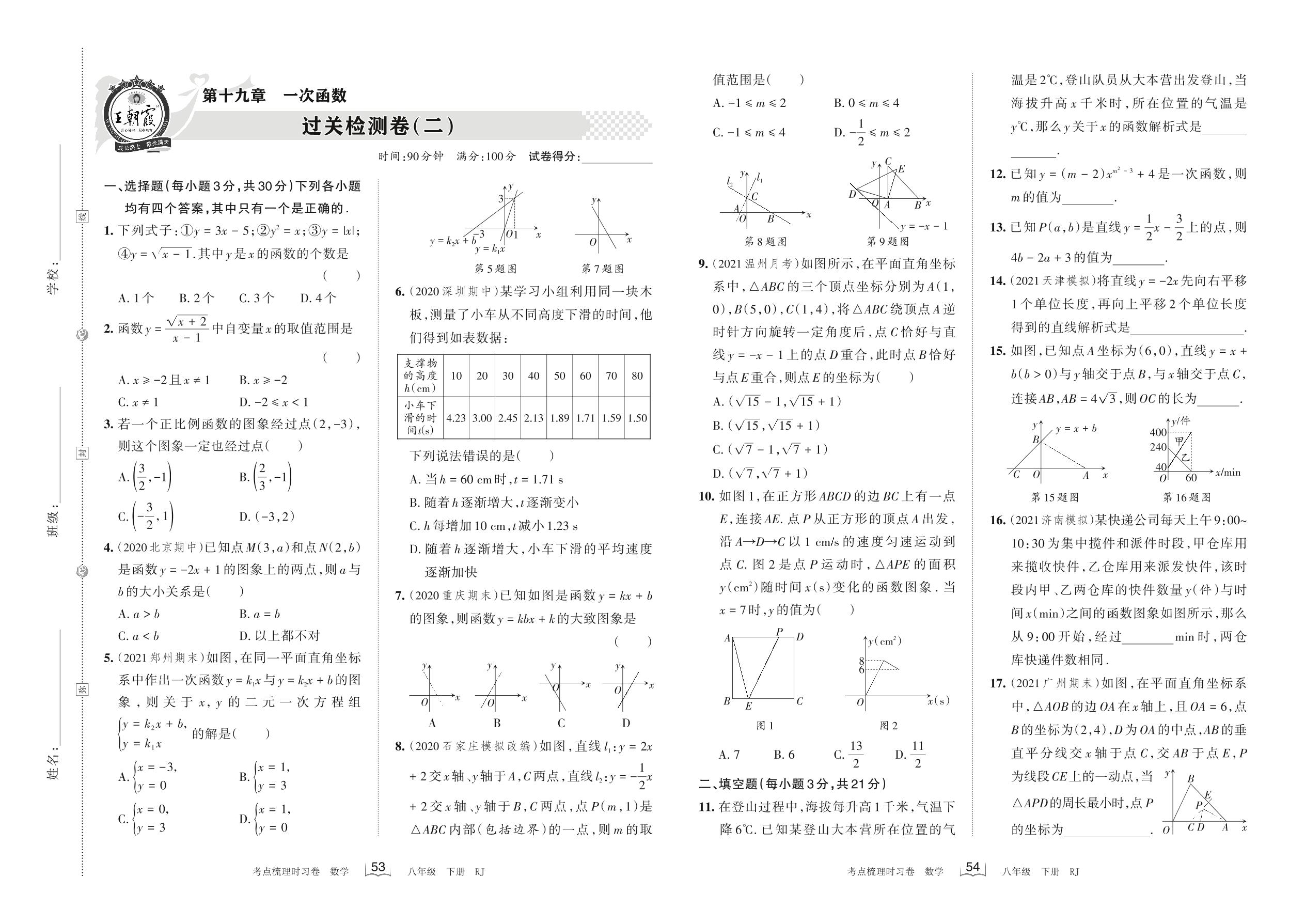 2022下册八年级数学人教版 第十九章 过关检测卷(二)