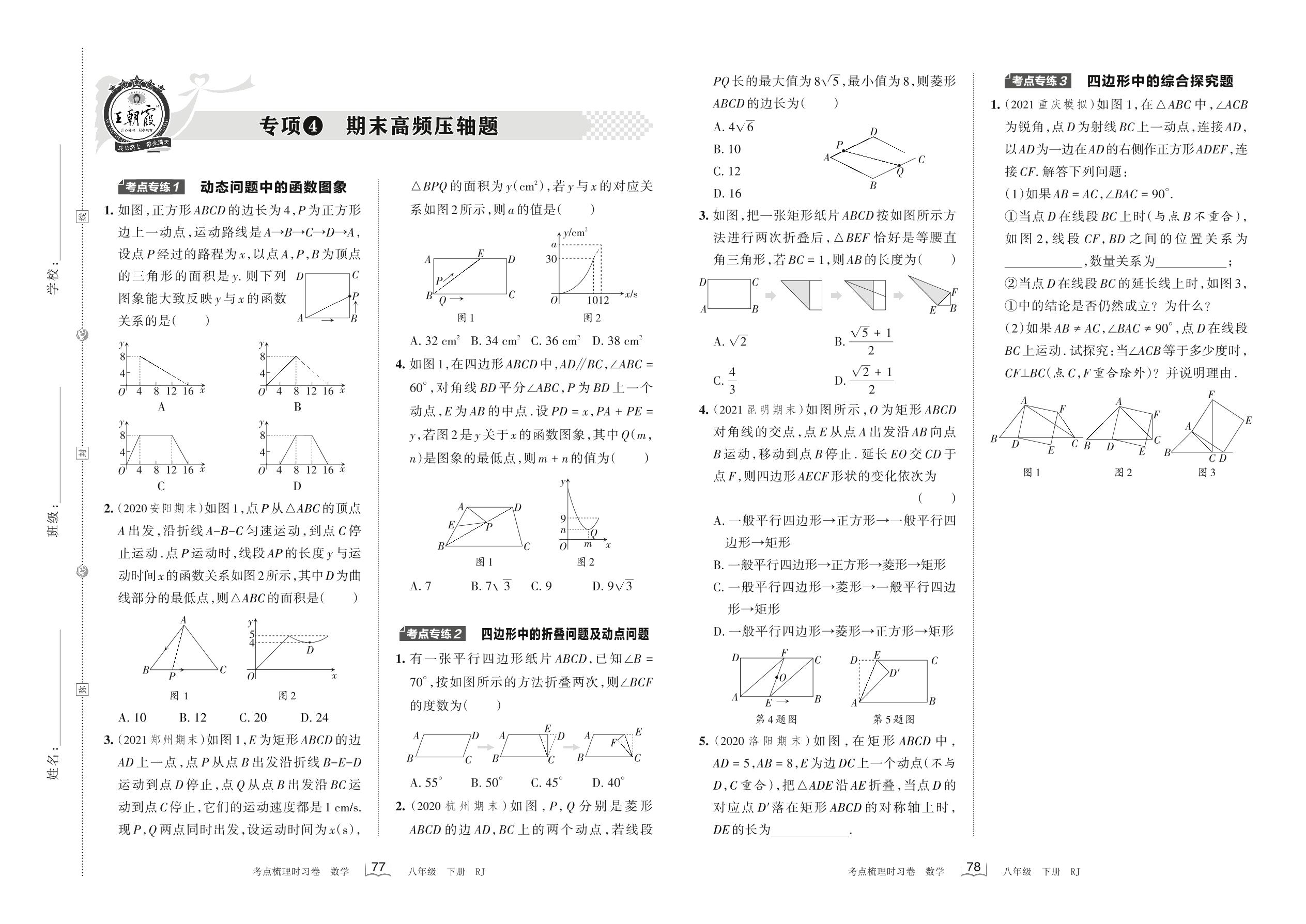 2022下册八年级数学人教版 专项4 期末高频压轴题