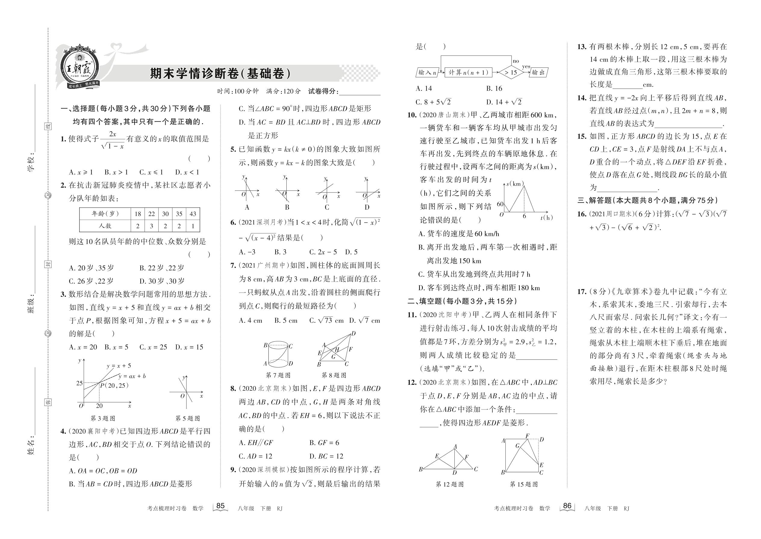 2022下册八年级数学人教版 期末学情诊断卷(基础卷)