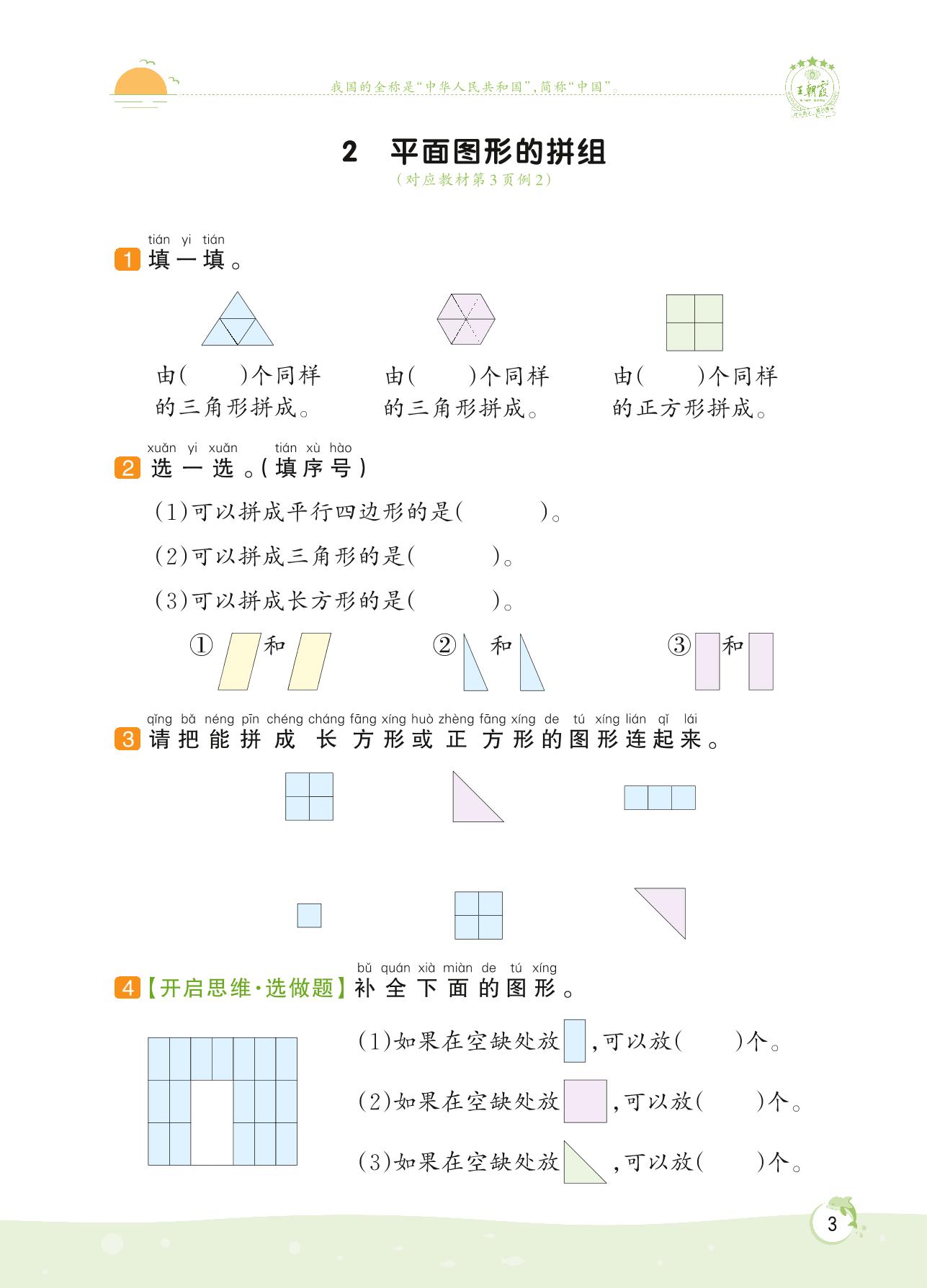 2022下册一年级数学人教版 第一单元——2 平面图形的拼组