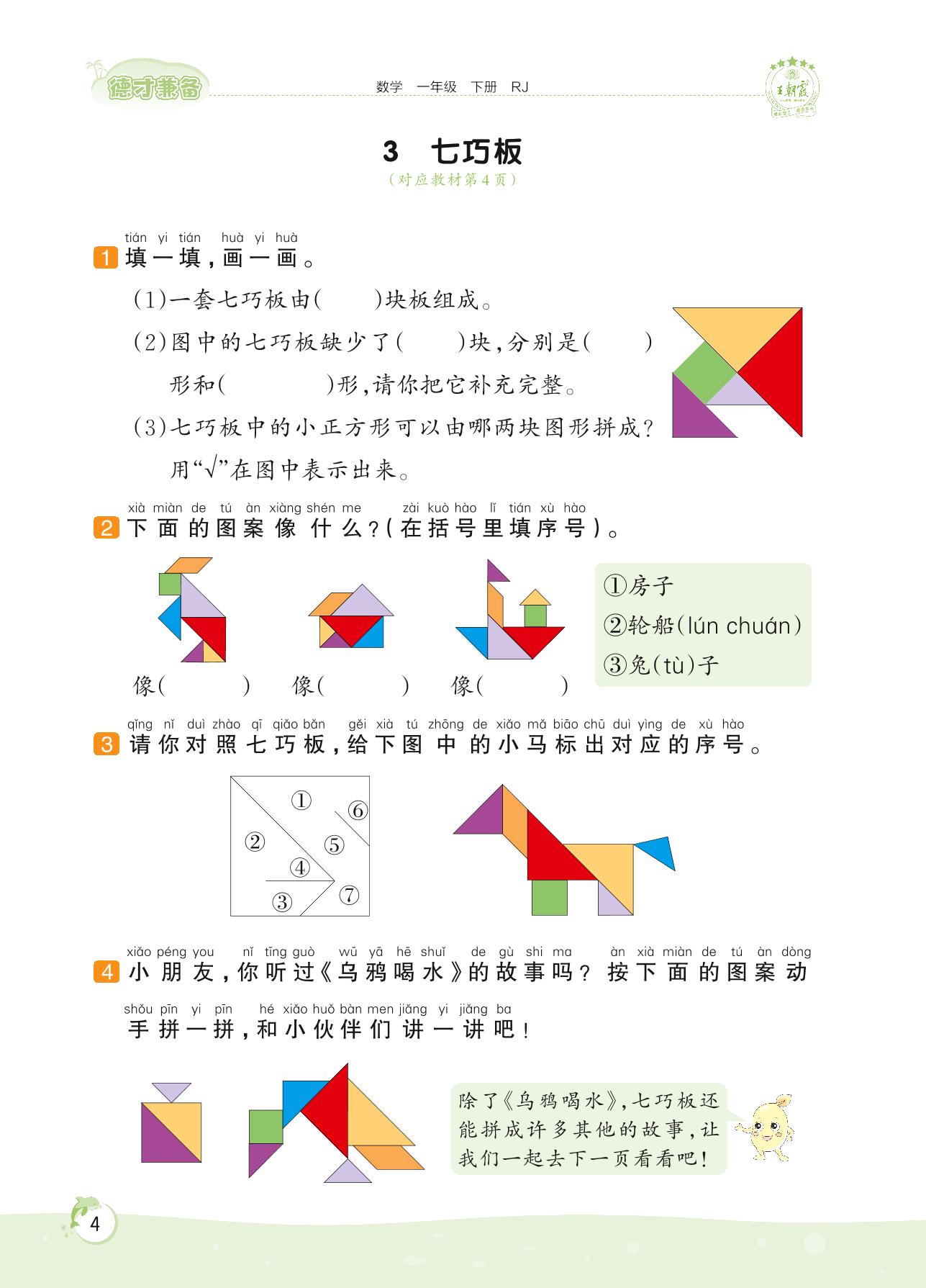 2022下册一年级数学人教版 第一单元——3 七巧板