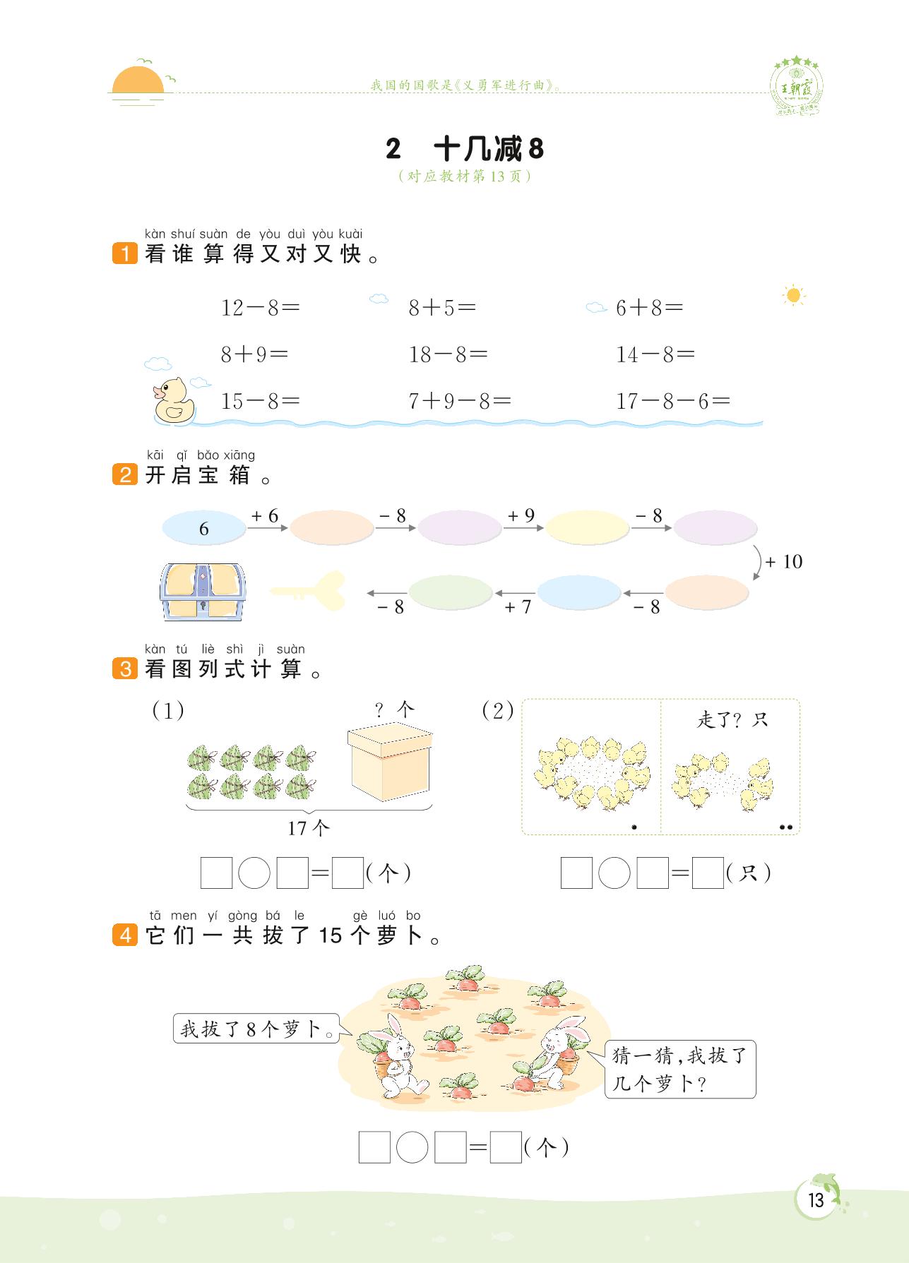2022下册一年级数学人教版 第二单元——2 十几减8