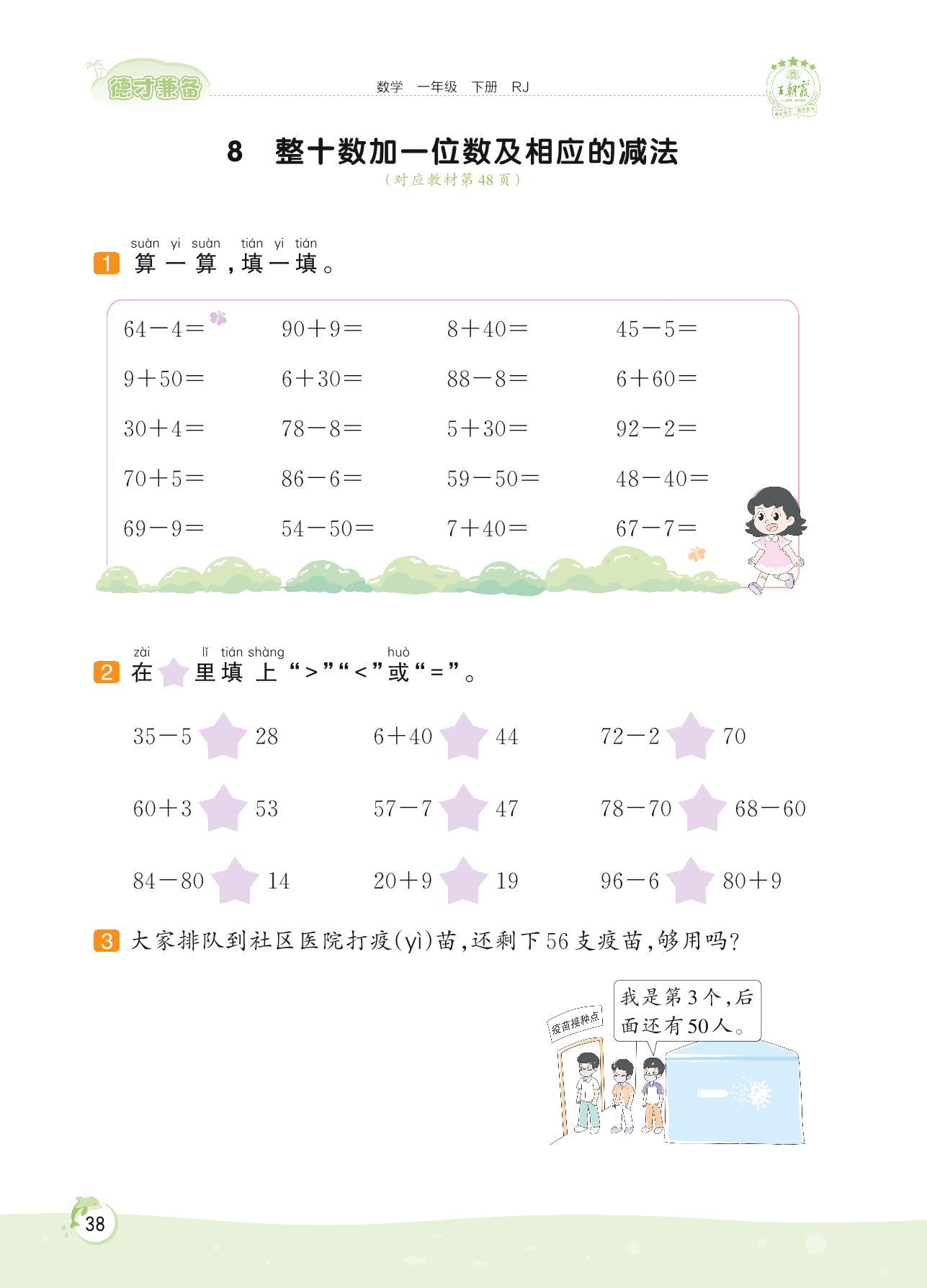 2022下册一年级数学人教版 第四单元——8 整十数加一位数及相应的减法