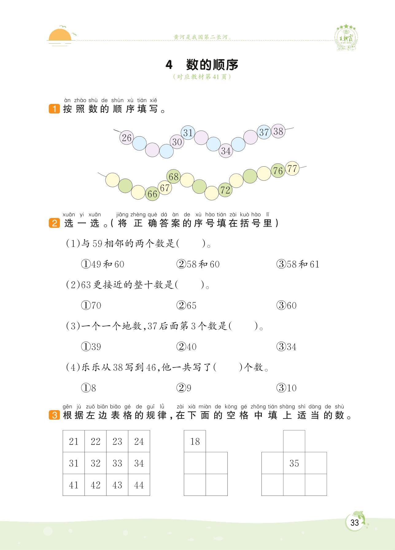 2022下册一年级数学人教版 第四单元——4 数的顺序