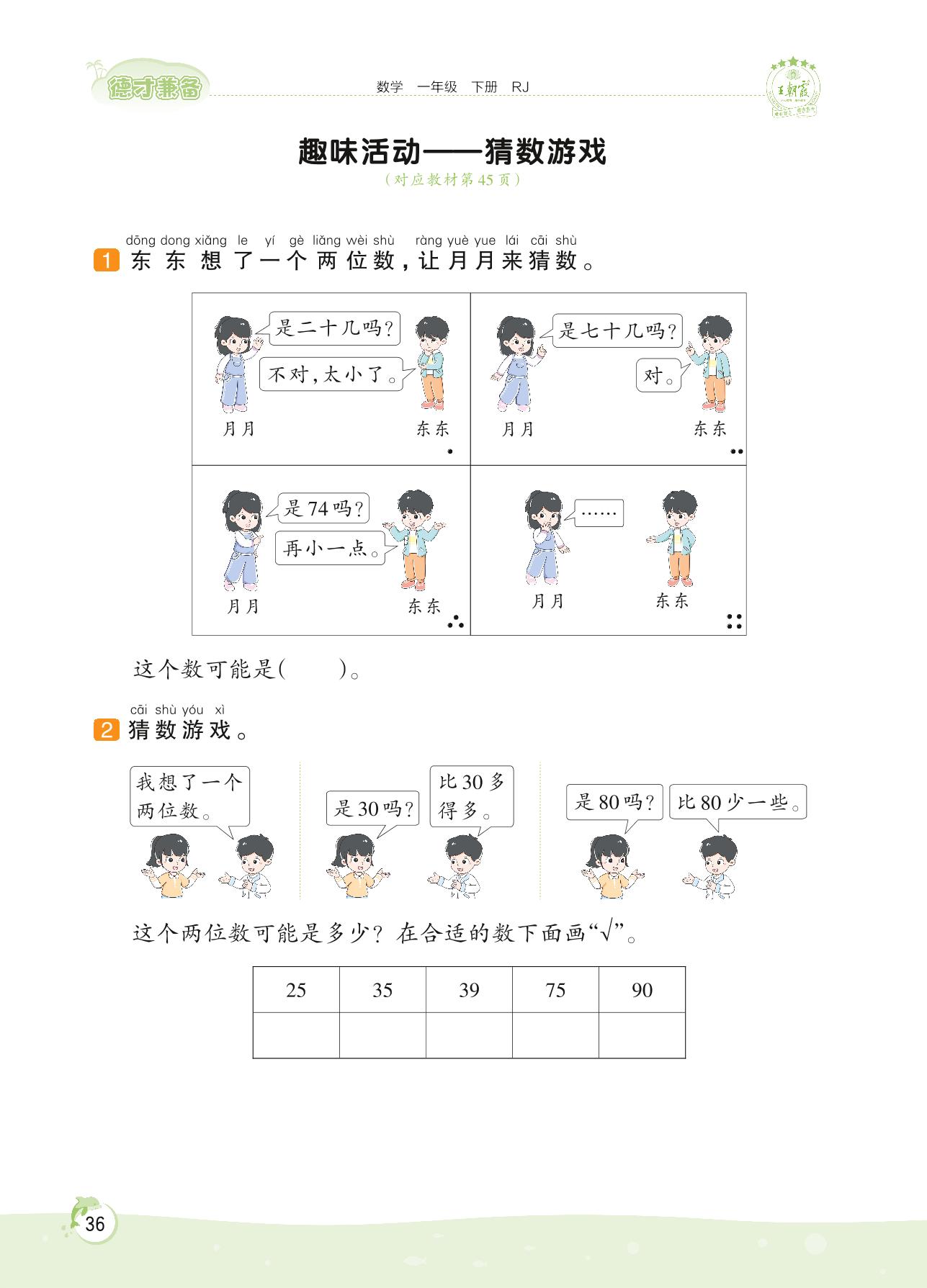 2022下册一年级数学人教版 第四单元——趣味活动 猜数游戏