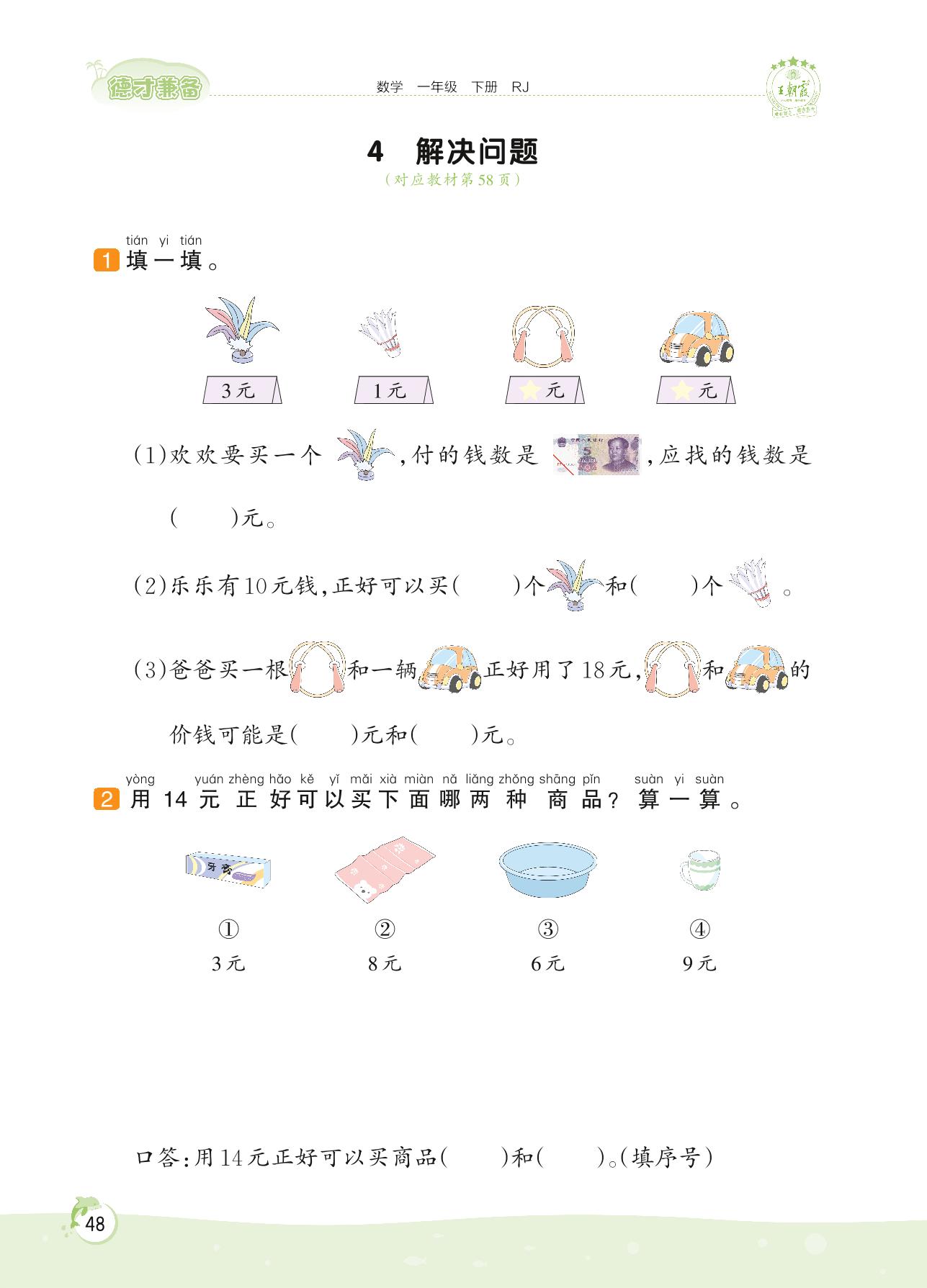 2022下册一年级数学人教版 第五单元——4 解决问题