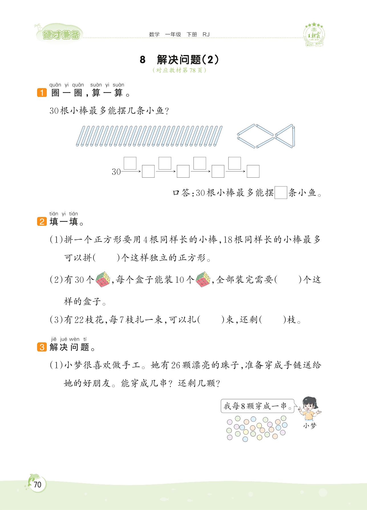 2022下册一年级数学人教版 第六单元——8 解决问题(2)