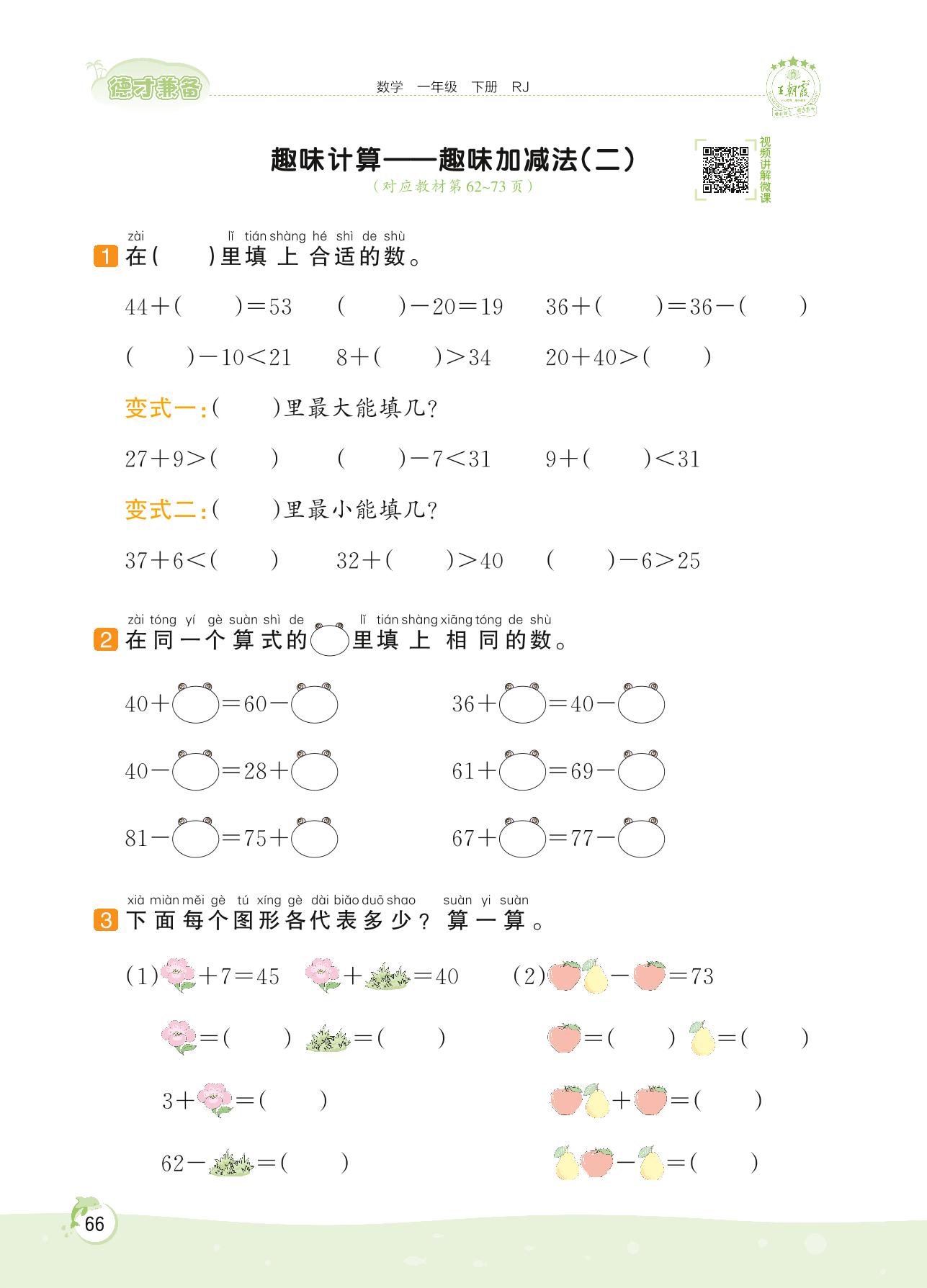 2022下册一年级数学人教版 第六单元——趣味计算 趣味加减法(二)