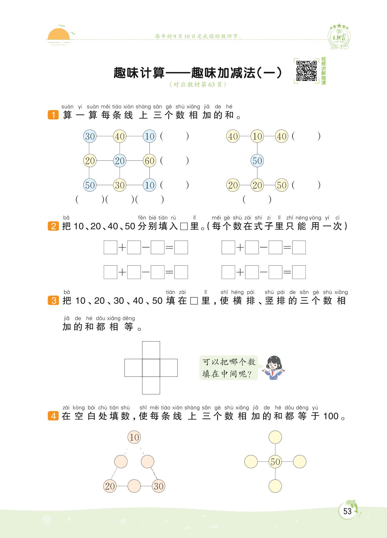 2022下册一年级数学人教版 第六单元——趣味计算 趣味加减法(一)