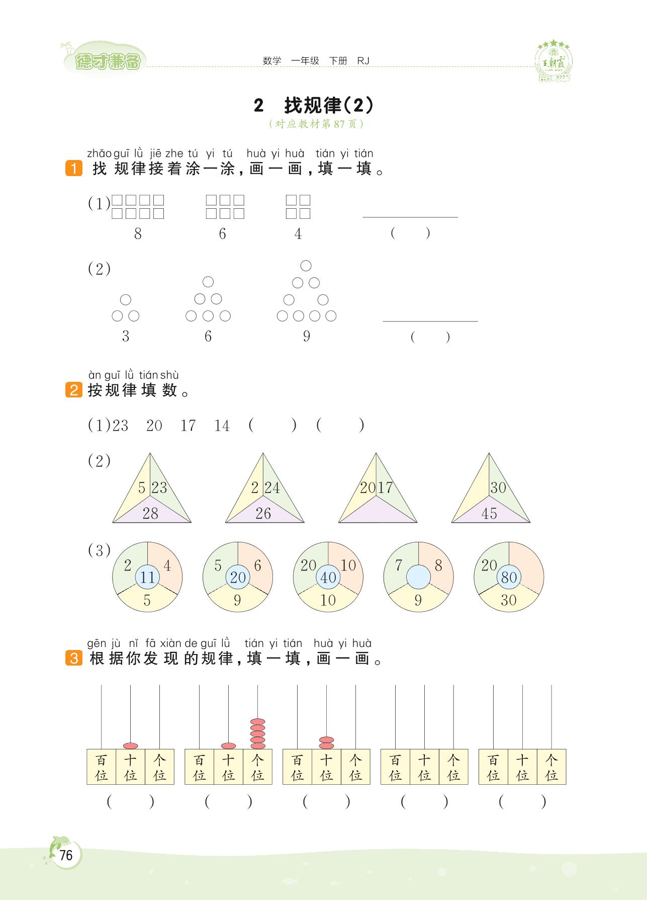 2022下册一年级数学人教版 第七单元——2 找规律(2)