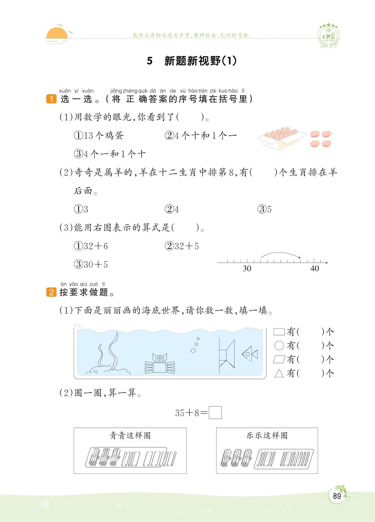 2022下册一年级数学人教版 第八单元——5 新题新视野(1)
