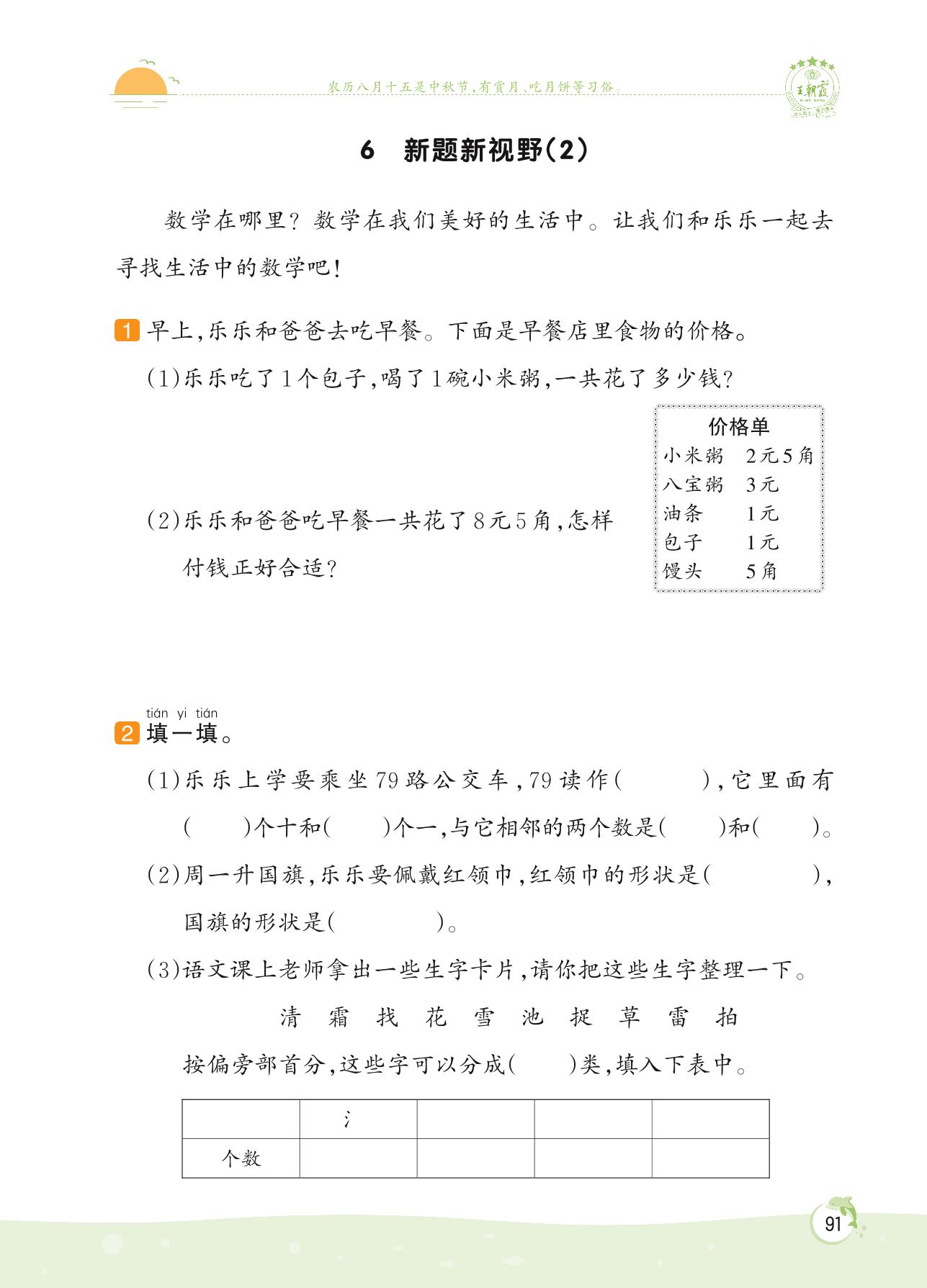 2022下册一年级数学人教版 第八单元——6 新题新视野(2)
