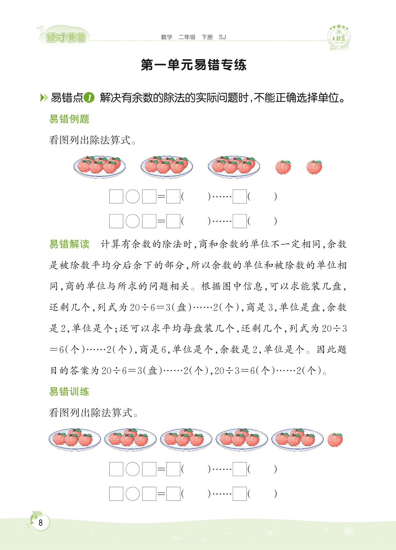 2022下册二年级数学苏教版 第一单元易错专练