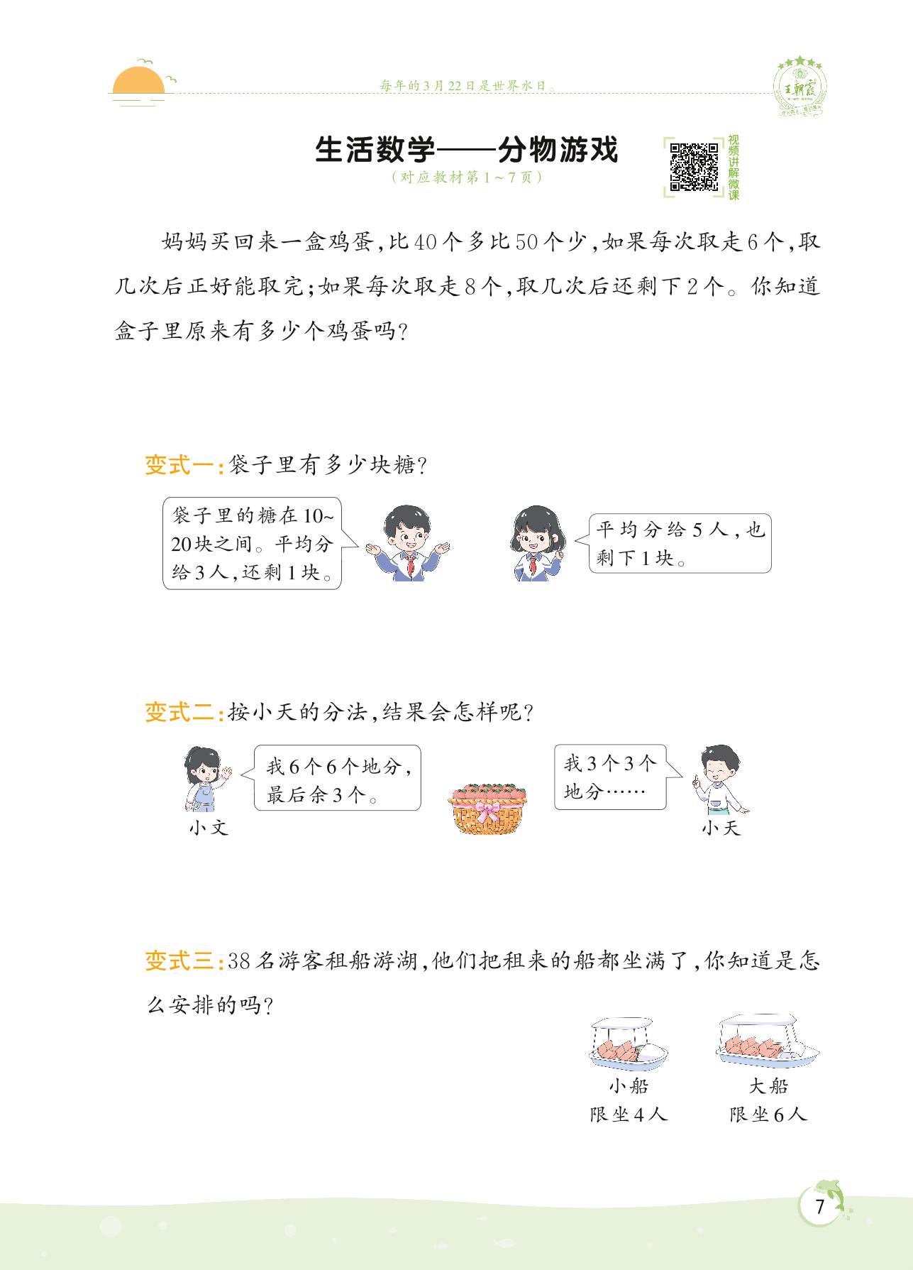 2022下册二年级数学苏教版 第一单元——生活数学 分物游戏